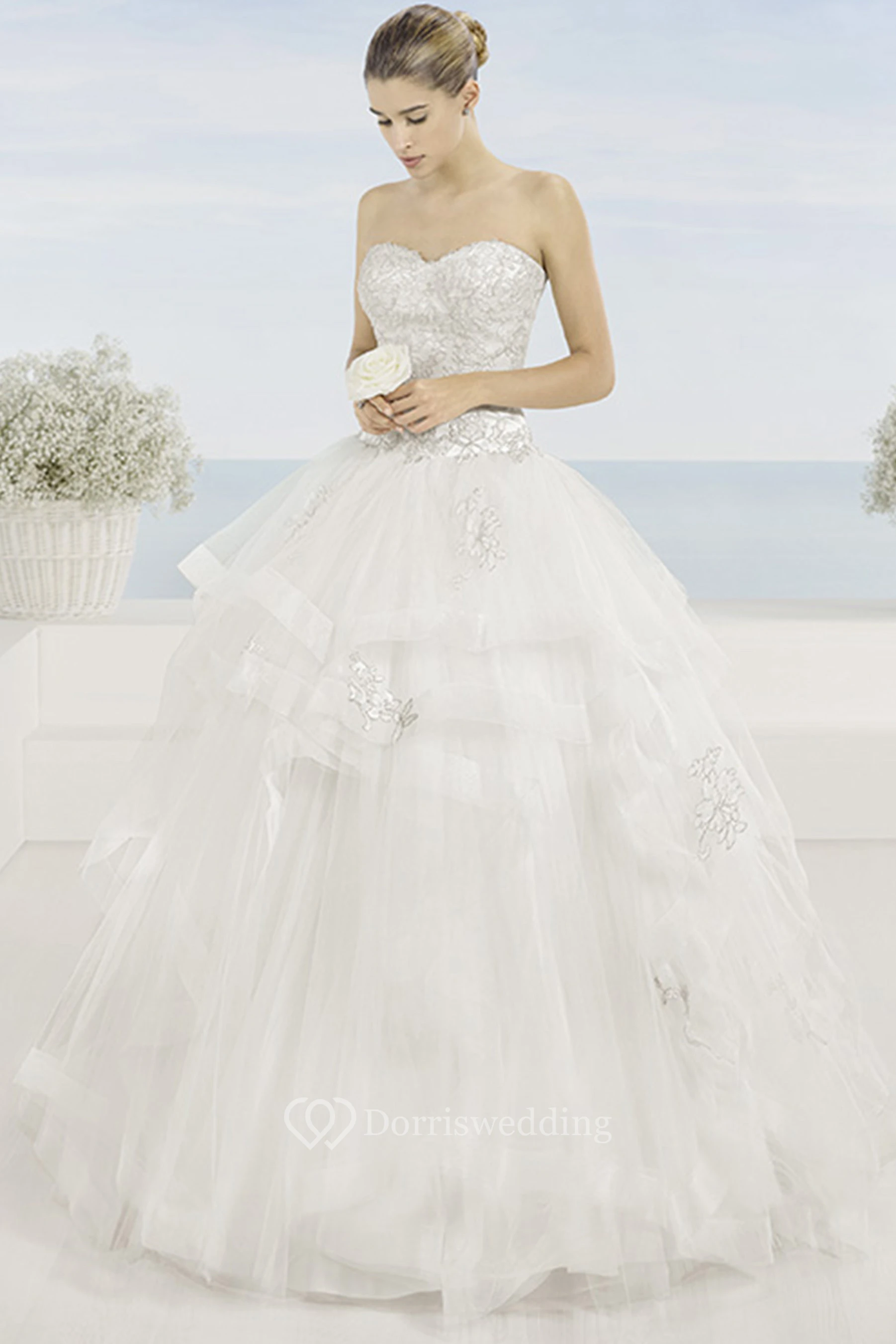 Ball Gown Draped Sweetheart Tulle Wedding Dress With Beading