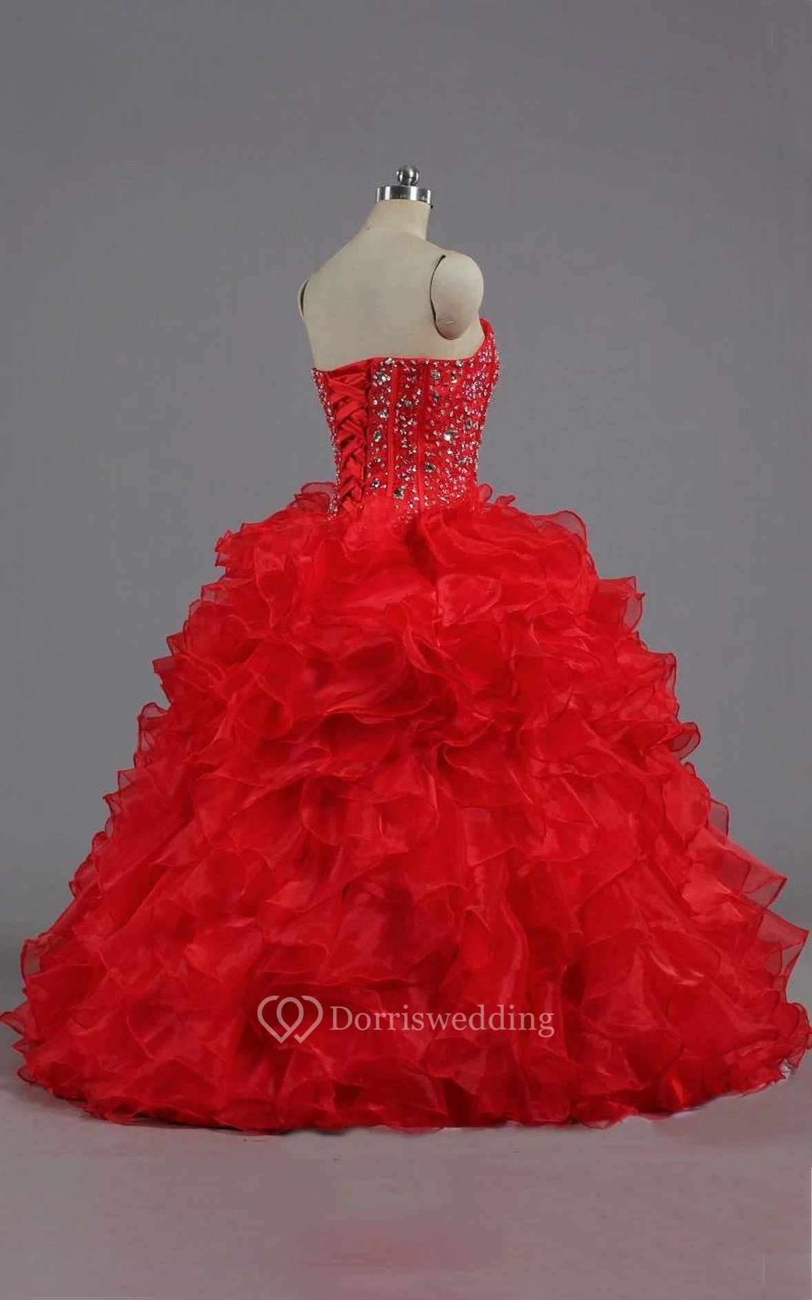 Ball Gown Floor-Length Bell Beading Ruffles Corset Back Lace Organza Dress