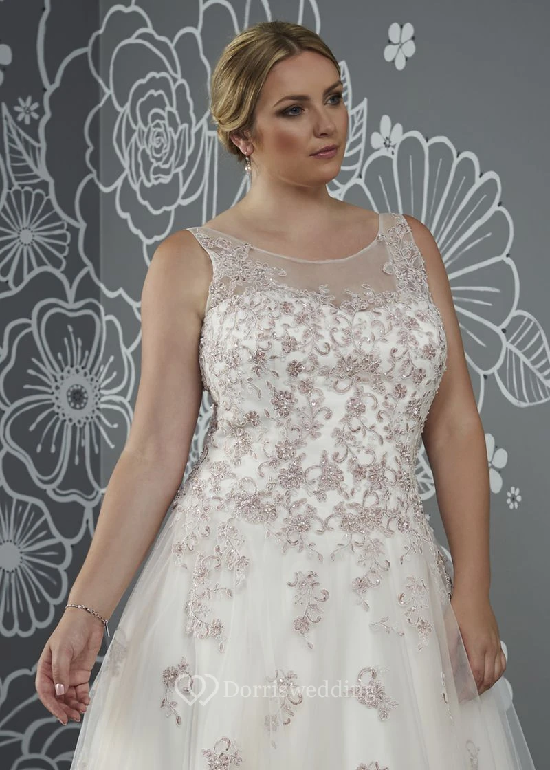 Ball Gown Floor-Length Scoop Neck Sleeveless Tulle Court Train Lace-Up Back Beading Dress