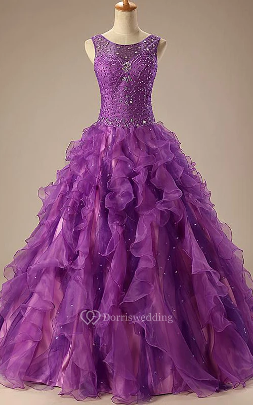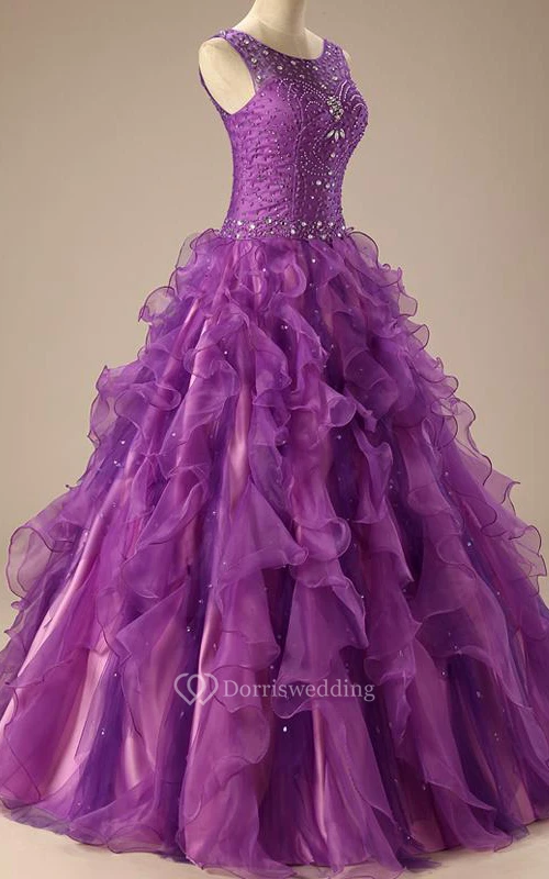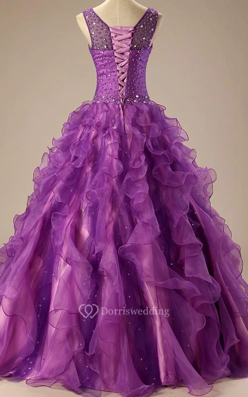 Ball Gown Floor-Length Sleeveless Beading Corset Back Lace Sequins Organza Satin Dress