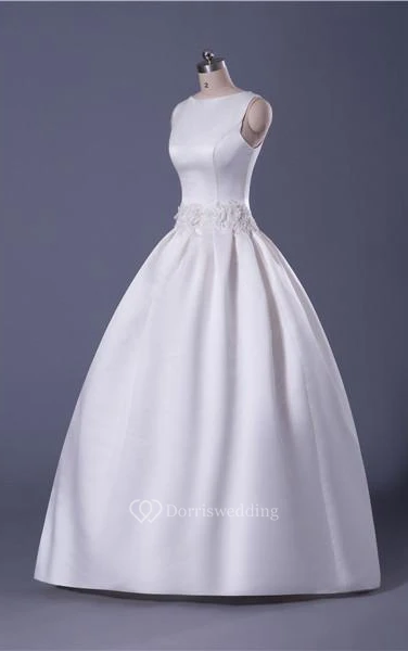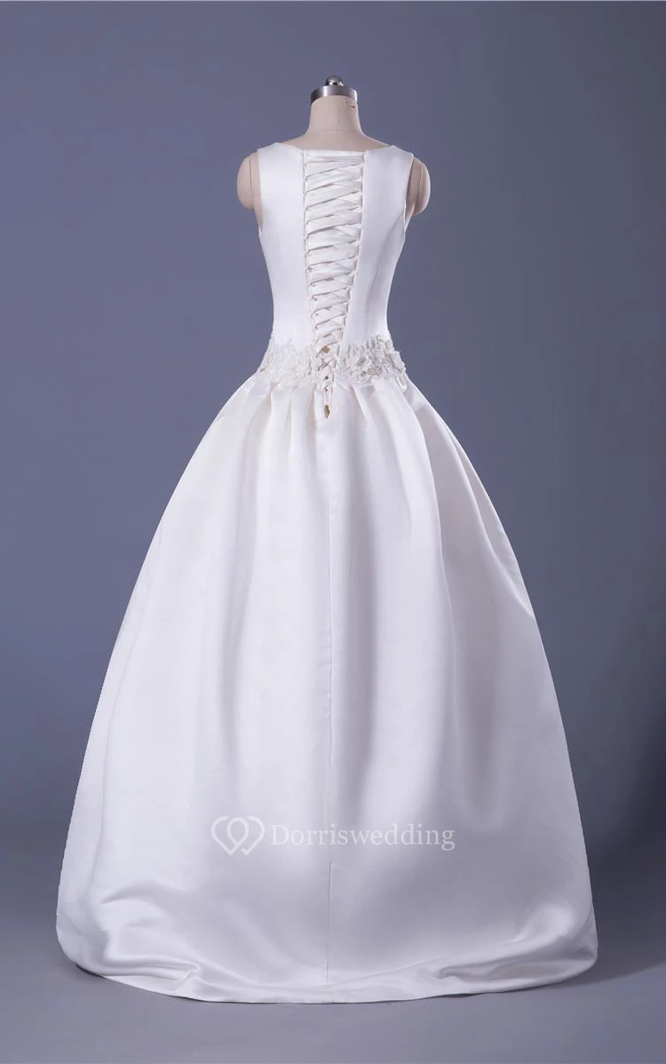 Ball Gown Floor-Length Sleeveless Lace Satin Dress