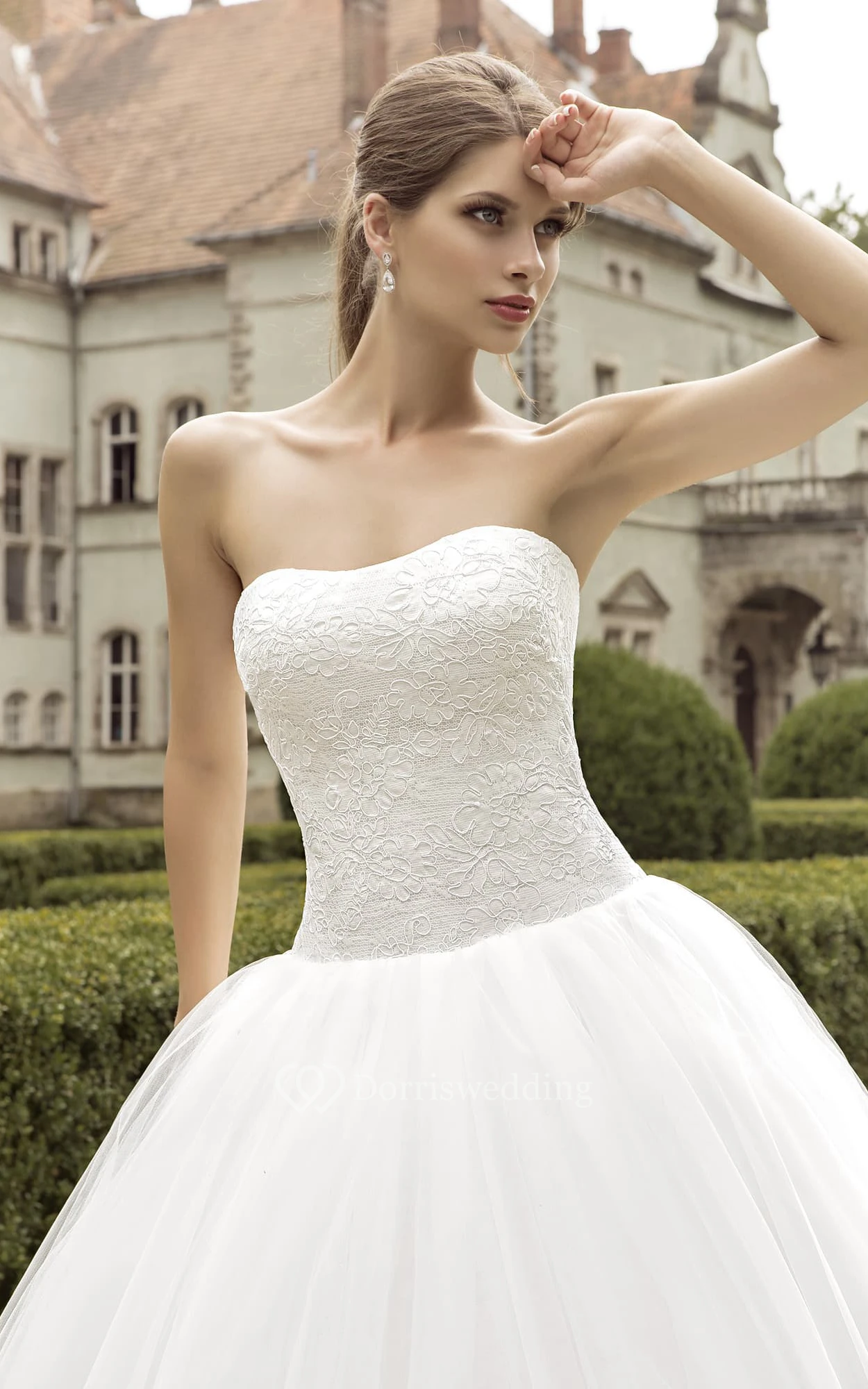 Ball Gown Floor-length Strapless Lace Top Tulle Dress