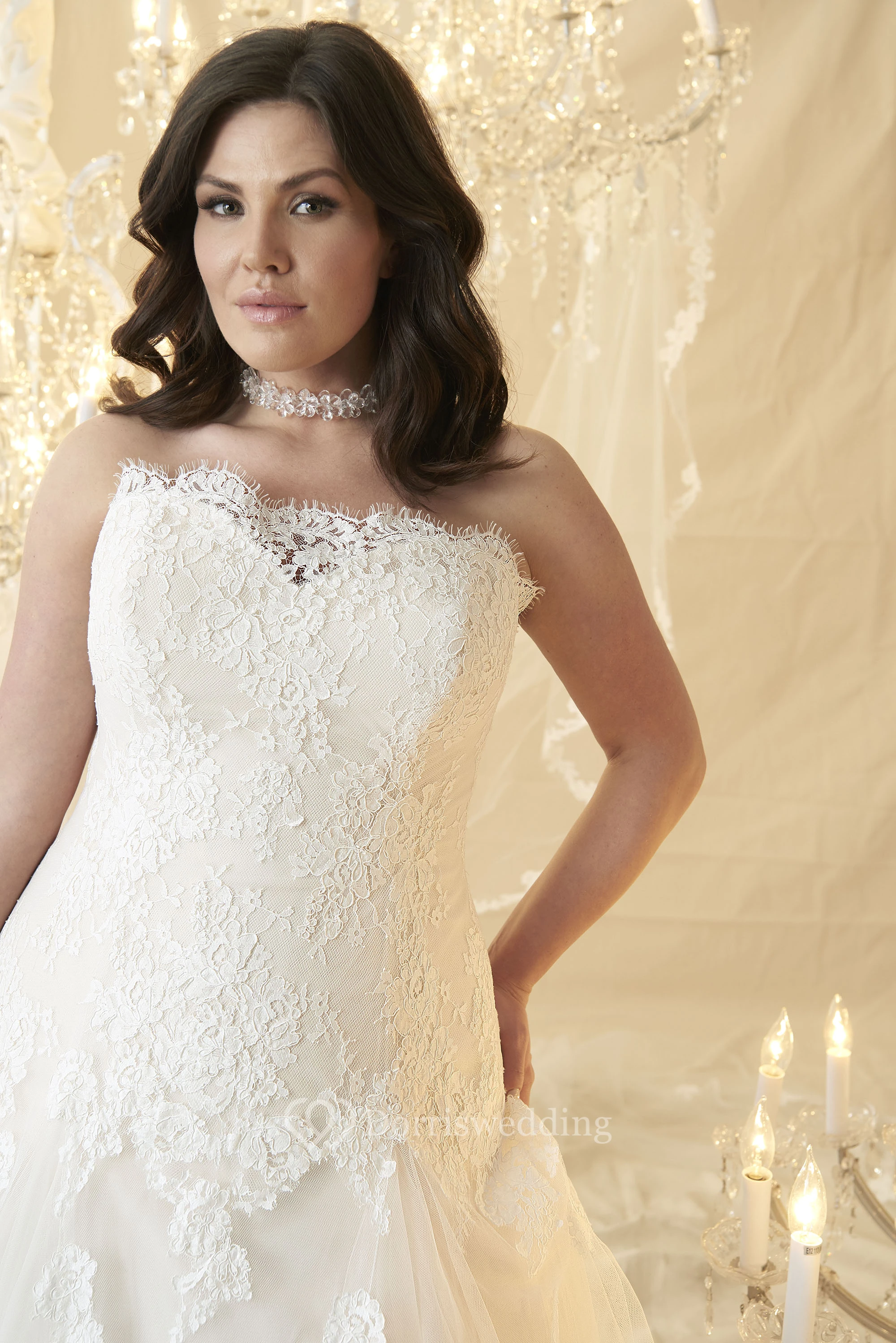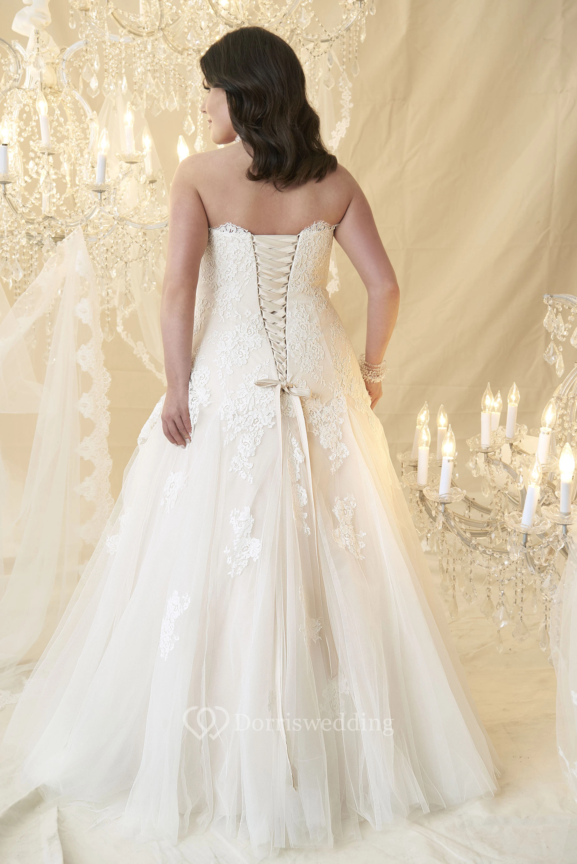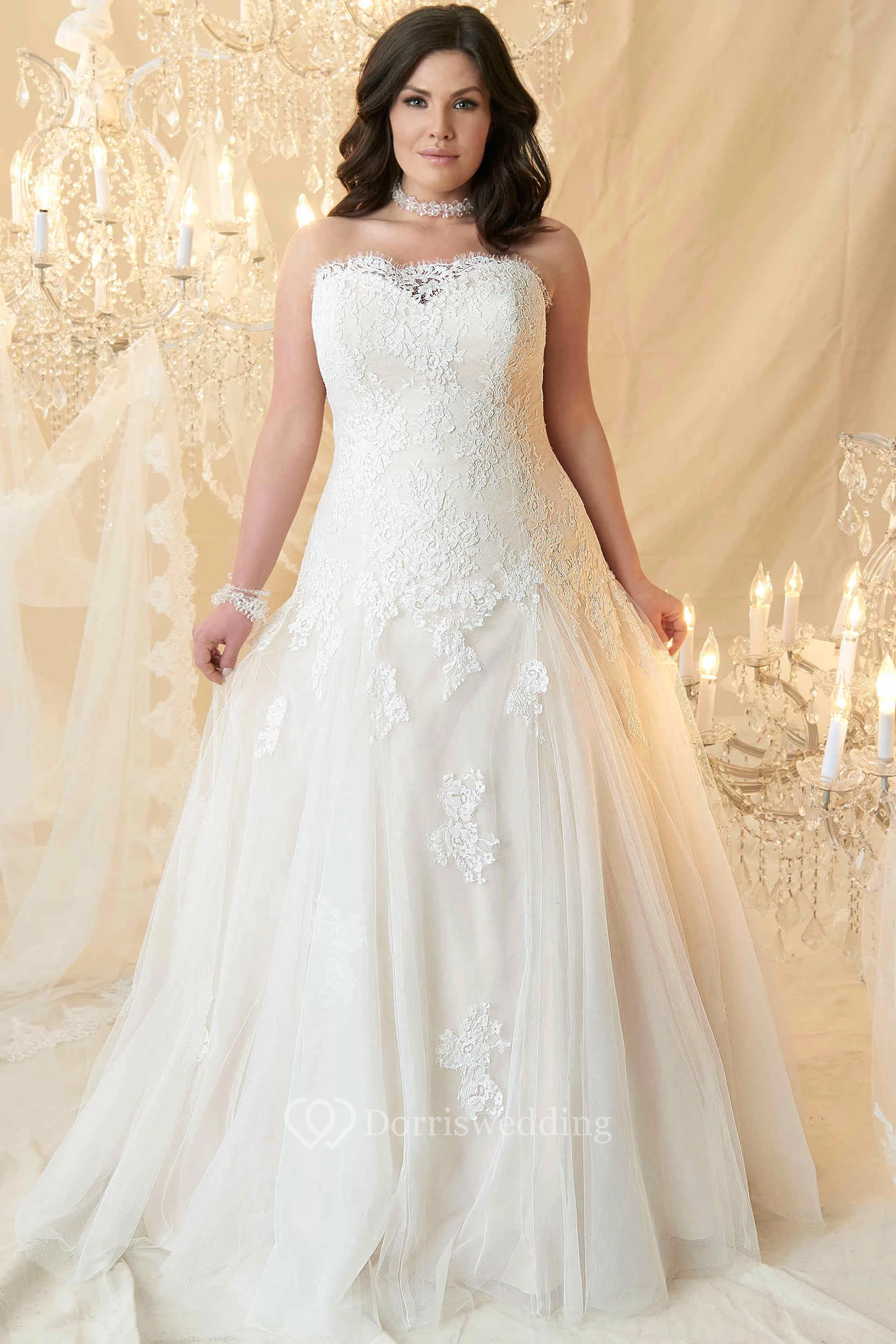Ball Gown Floor-Length Strapless Tulle&Lace Plus Size Wedding Dress With Appliques And Corset Back