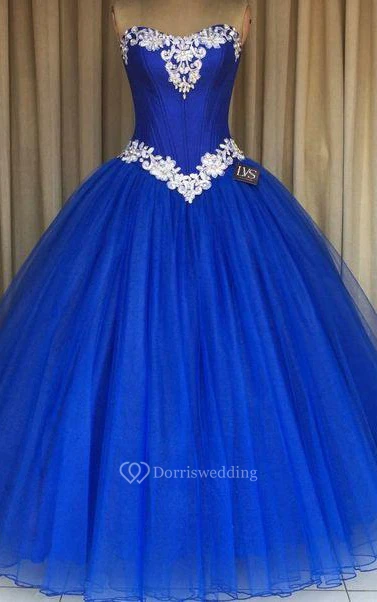 Ball Gown Floor-Length Straps Appliques Zipper Corset Back Straps Tulle Lace Dress