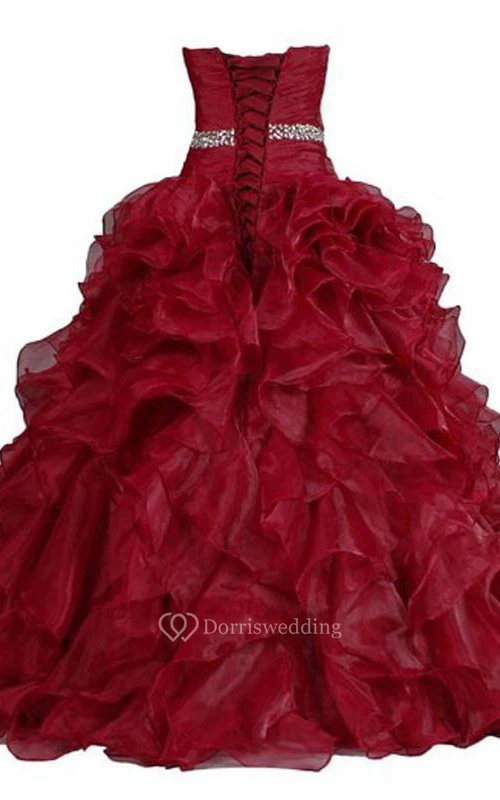 Ball Gown Floor-Length Straps Sleeveless Bell Pleats Beading Corset Back Straps Lace Organza Dress
