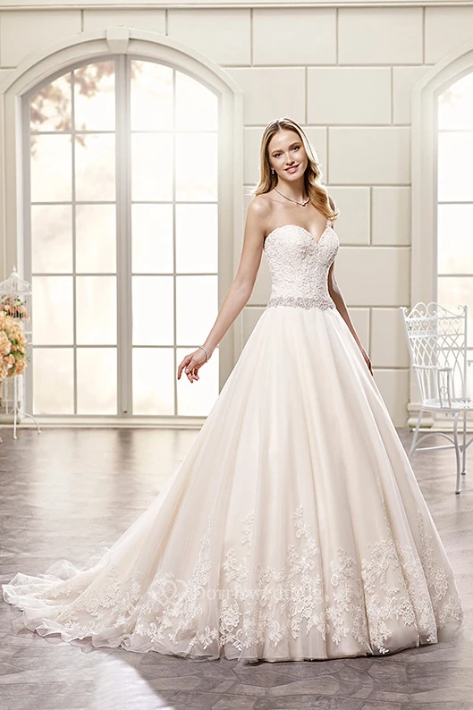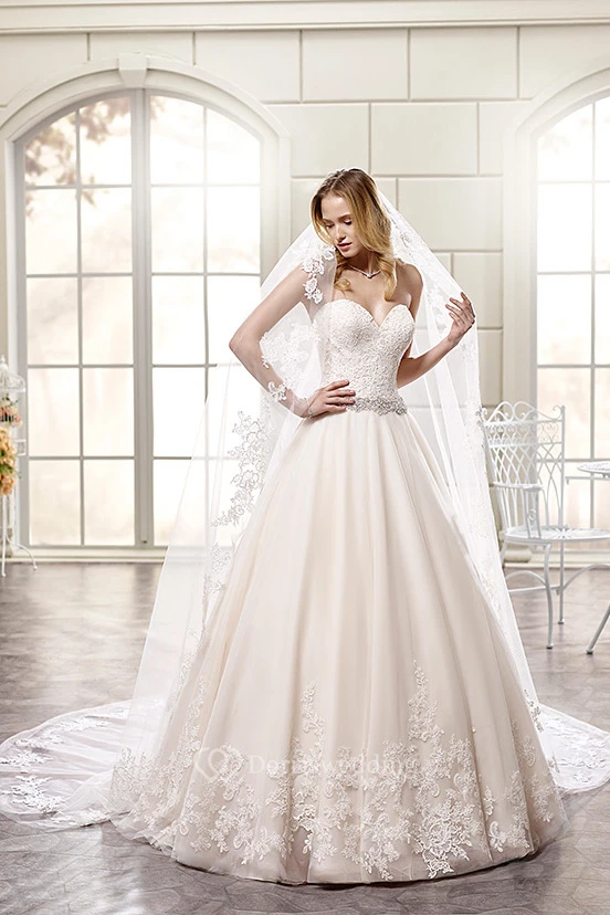 Ball Gown Floor-Length Sweetheart Jeweled Tulle&Lace Wedding Dress With Appliques