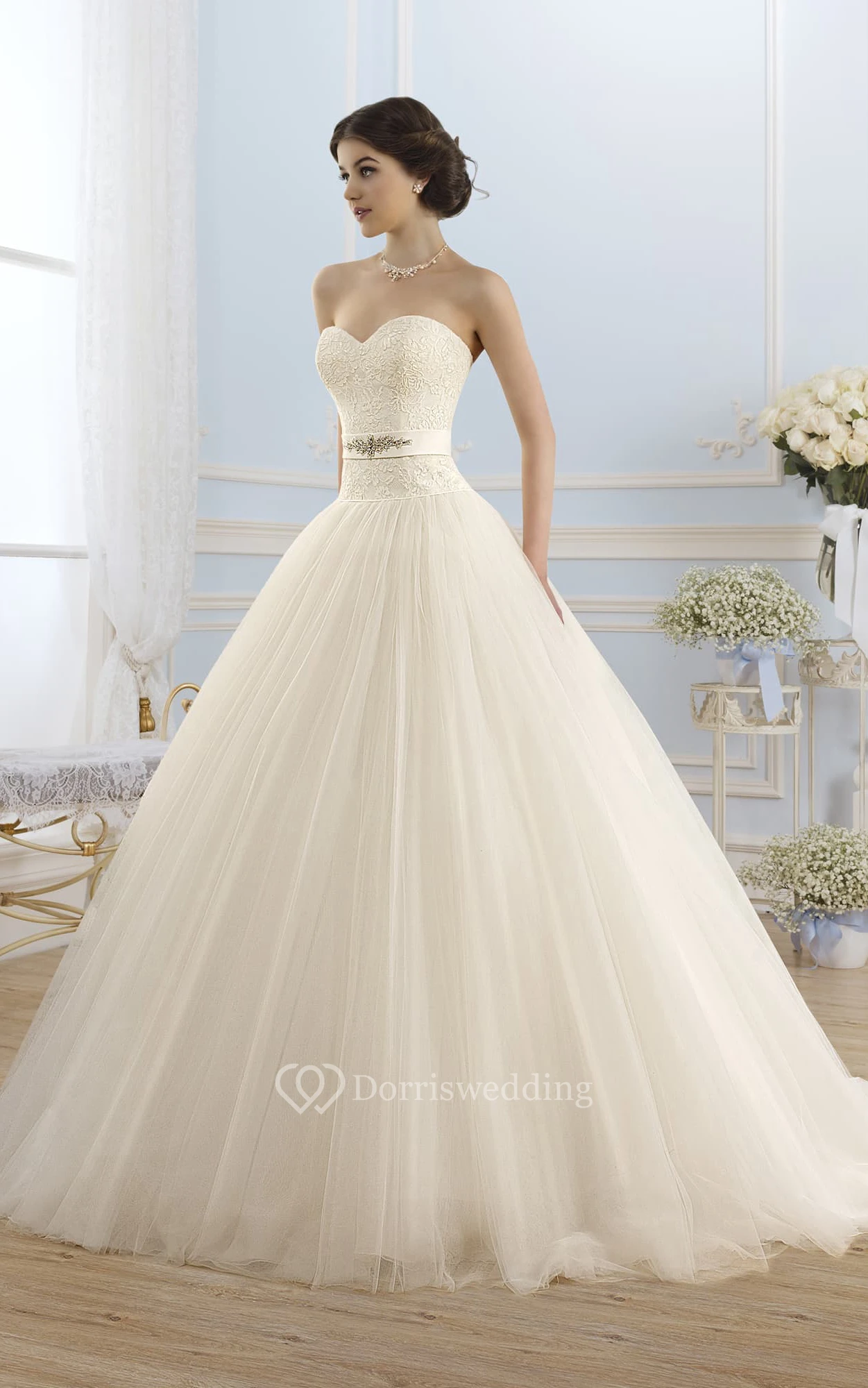 Ball Gown Floor-Length Sweetheart Sleeveless Backless Tulle Dress With Appliques And Waist Jewellery