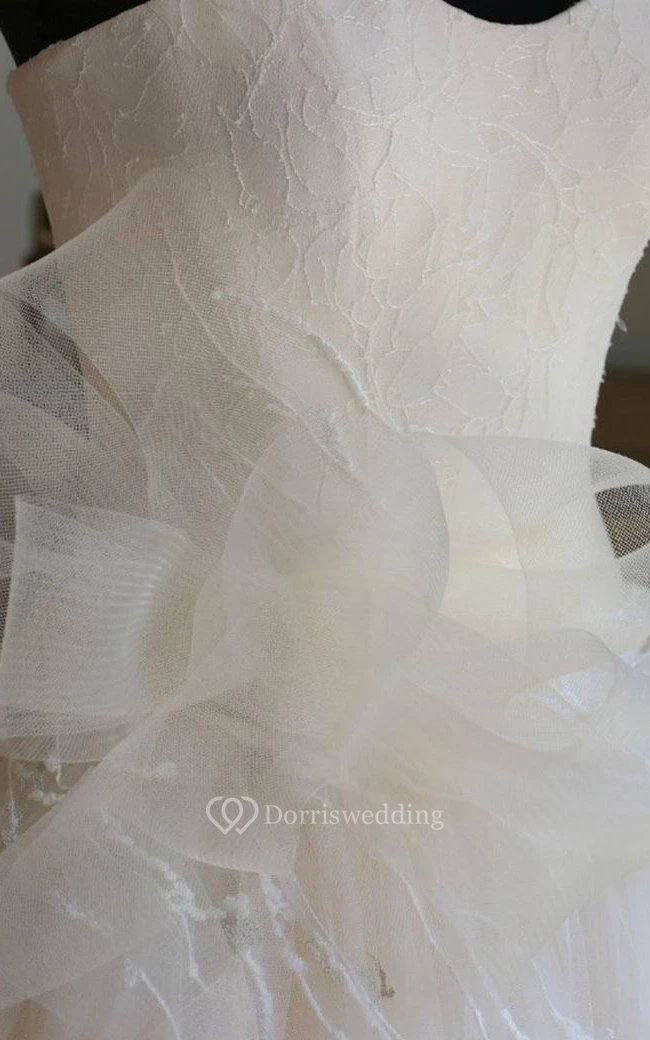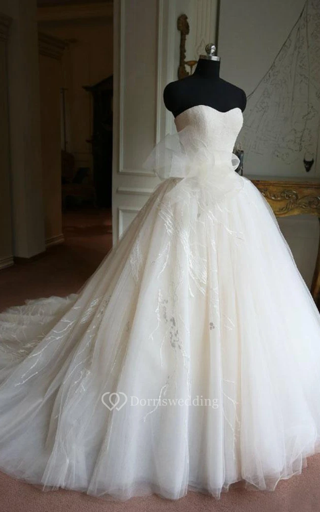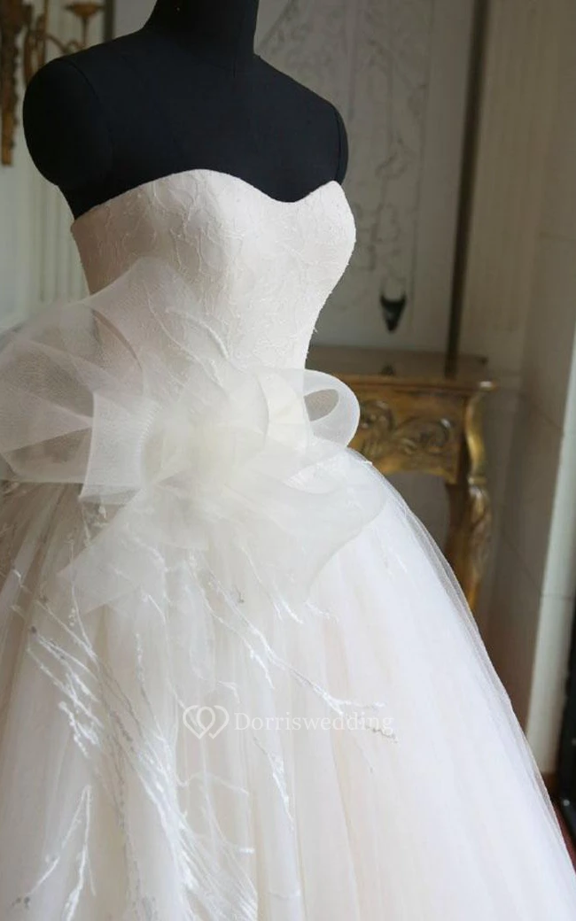 Ball Gown Floor-Length Sweetheart Sleeveless Bell Bow Appliques Zipper Keyhole Tulle Lace Dress