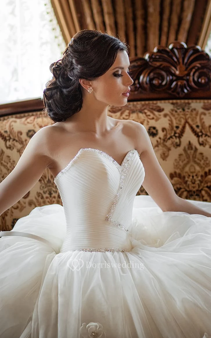 Ball Gown Floor-Length Sweetheart Sleeveless Tulle Dress With Beading And Flower