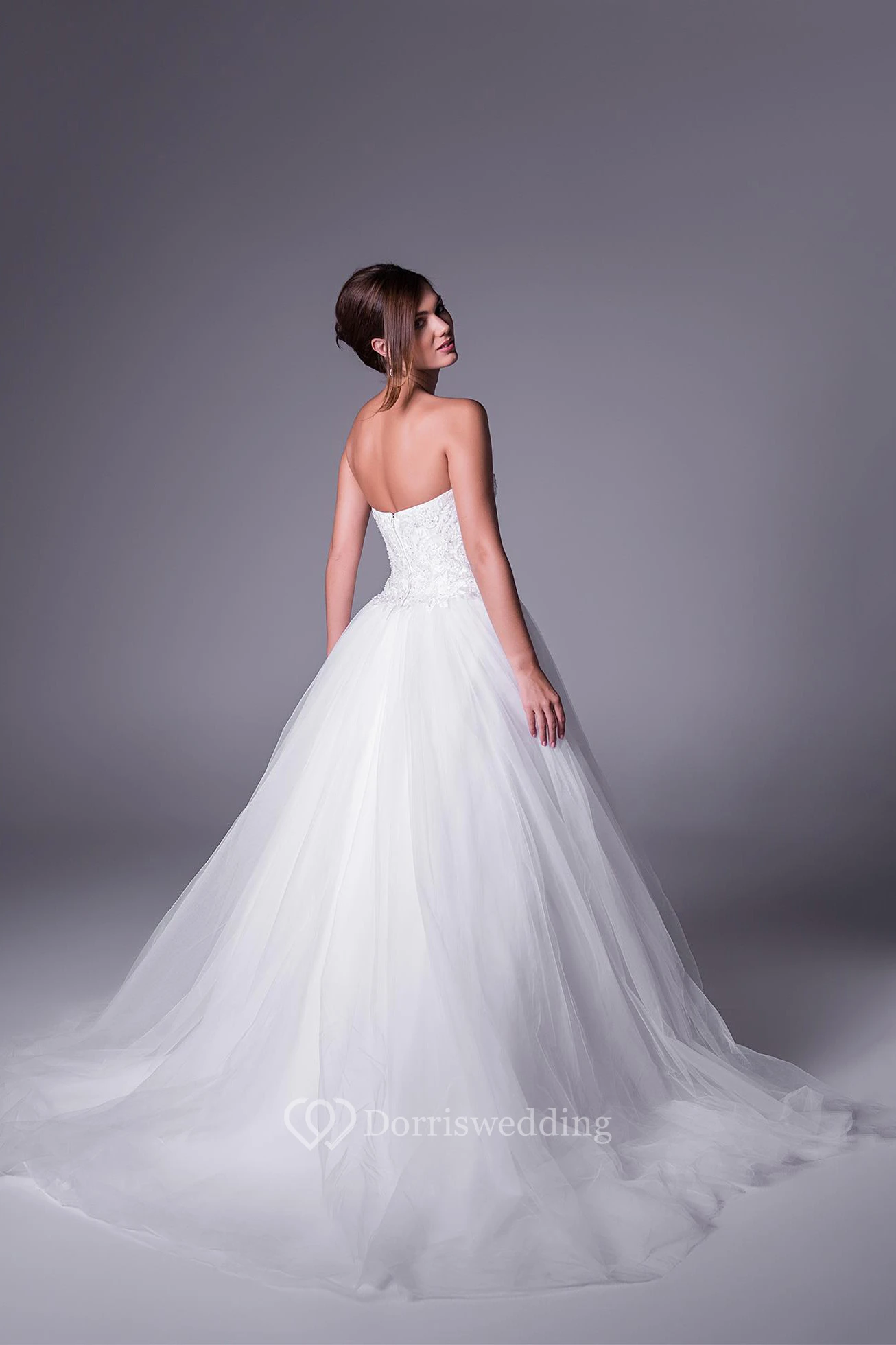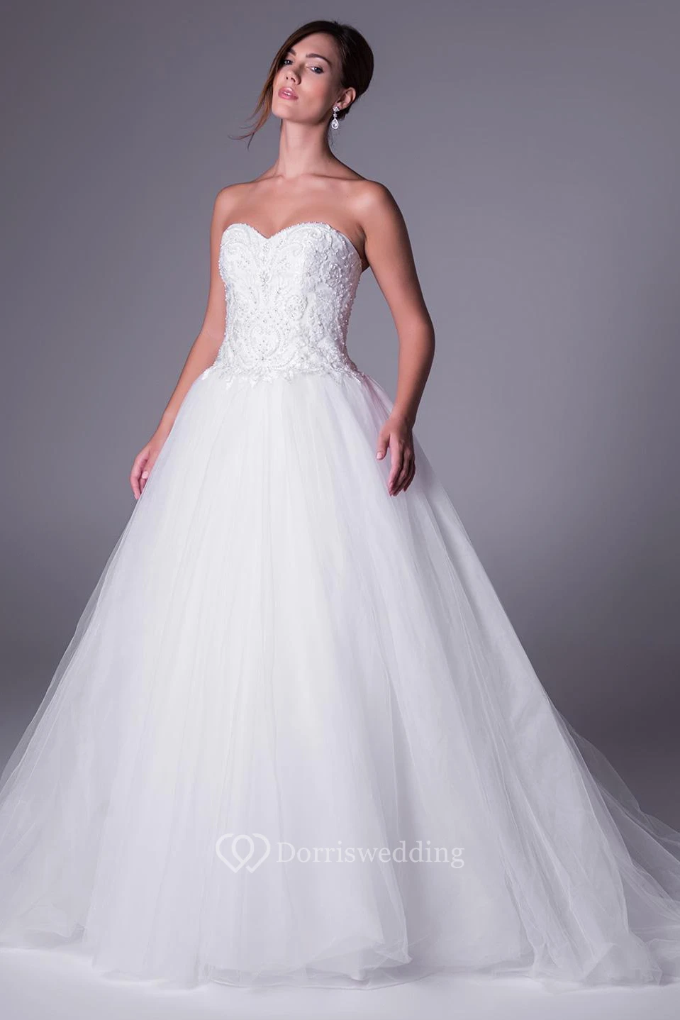 Ball Gown Floor-Length Sweetheart Tulle Wedding Dress With Appliques And Zipper