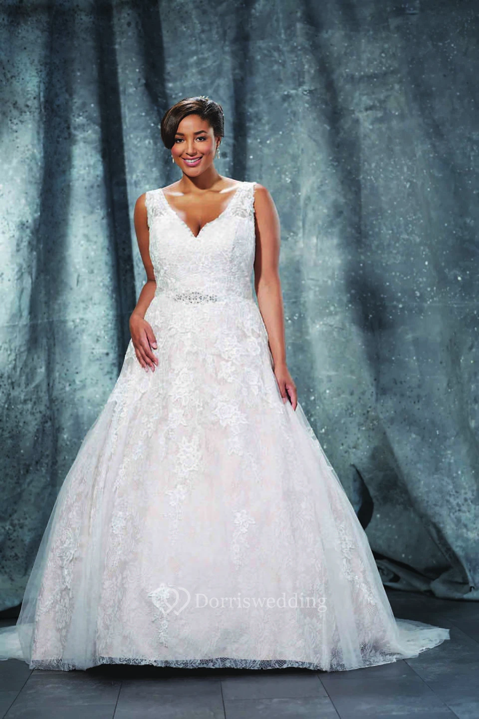 • Hemline/Train: Floor-length, Sweep/Brush Train