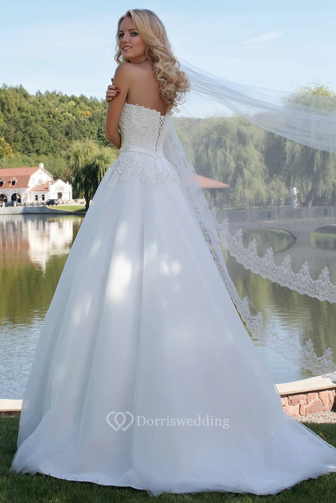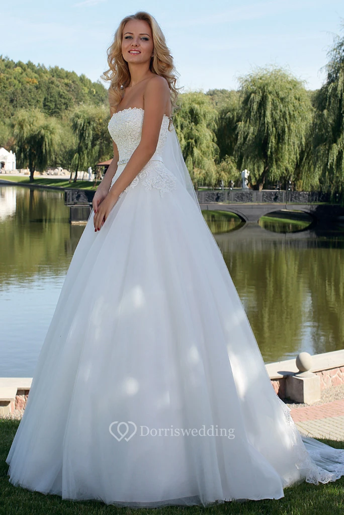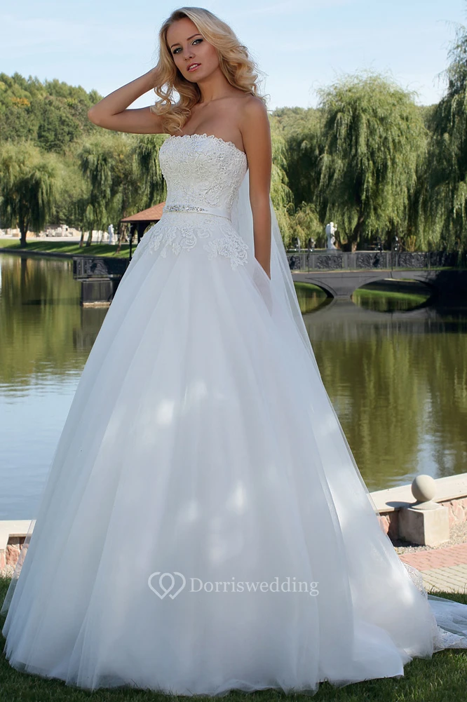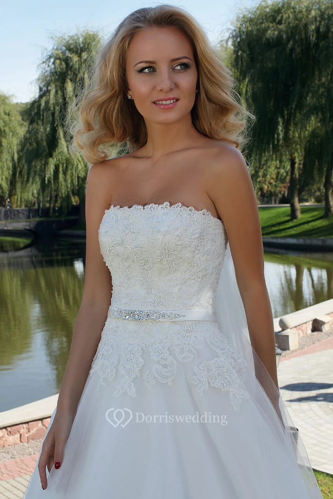 Ball Gown Jeweled Strapless Tulle Wedding Dress With Lace And Lace Up