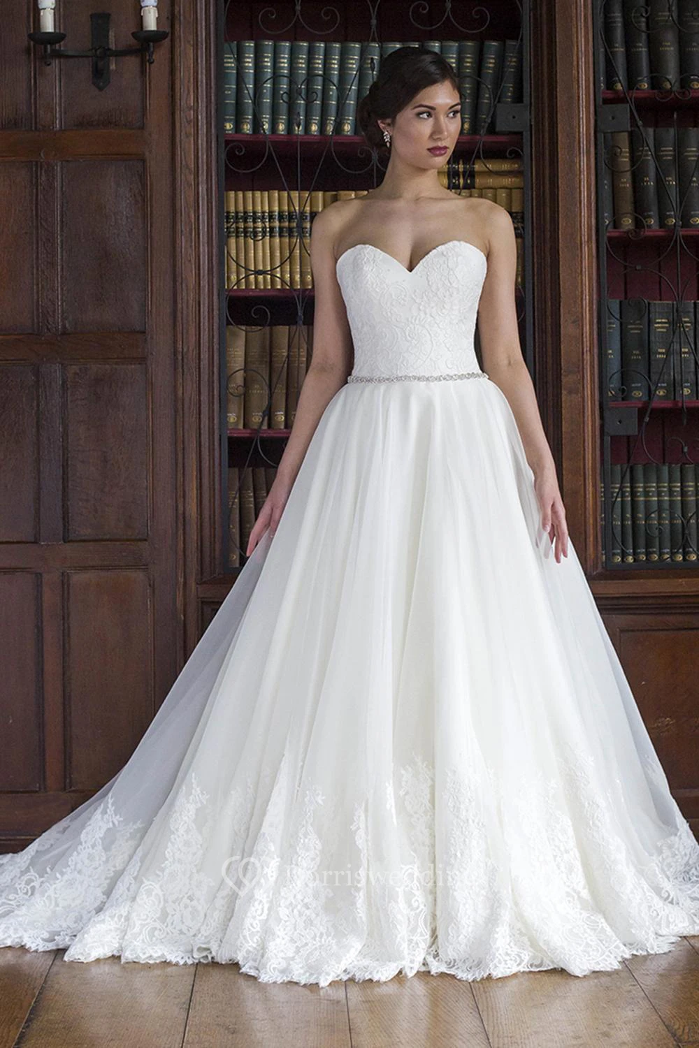 Ball Gown Jeweled Sweetheart Lace Wedding Dress