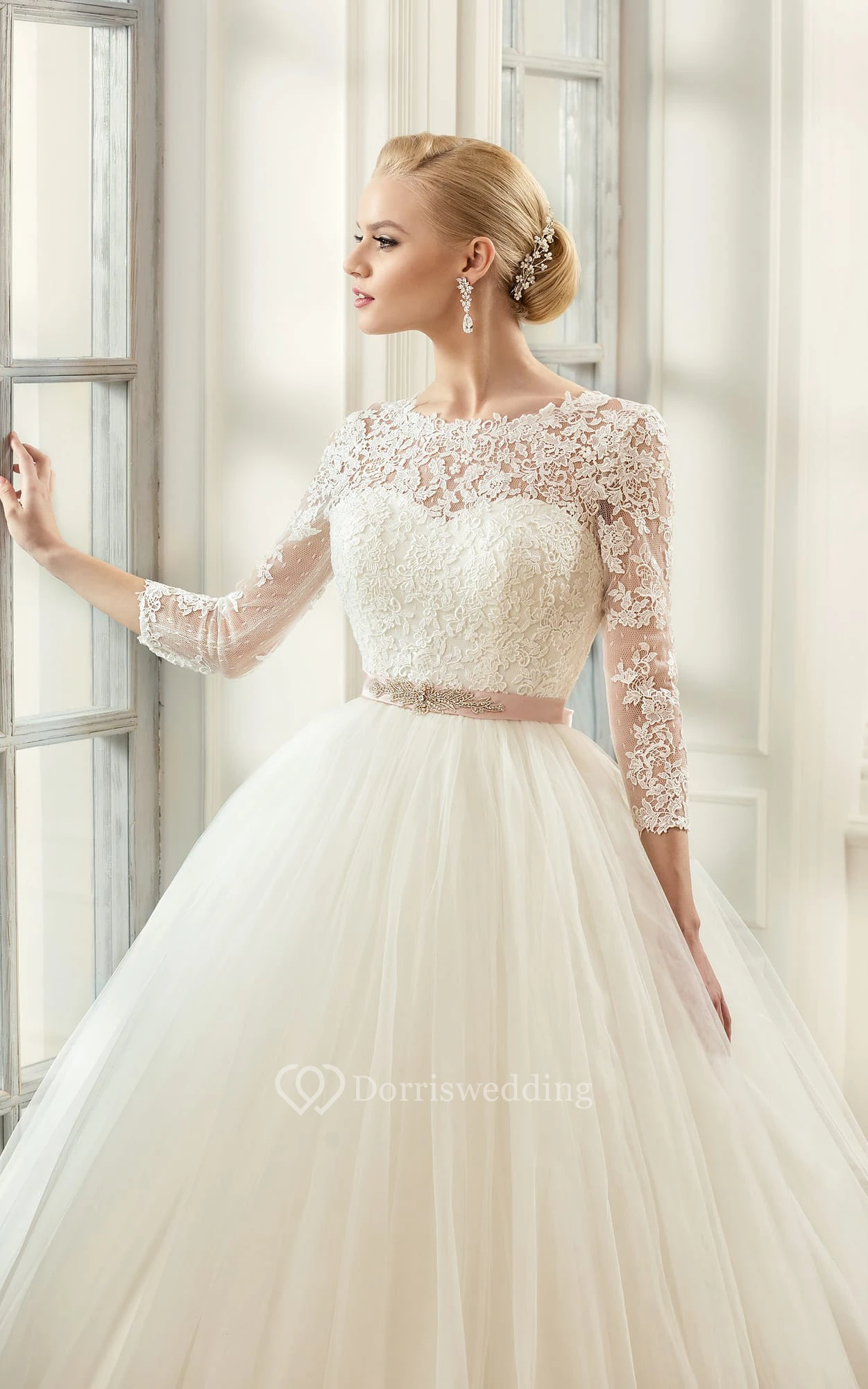This long sleeve dress is beautiful, the lace and tulle material is great and it is fantastic quality, the customer service is astounding, delivery was on point and not a day over 5 weeks! (Custom made dress).