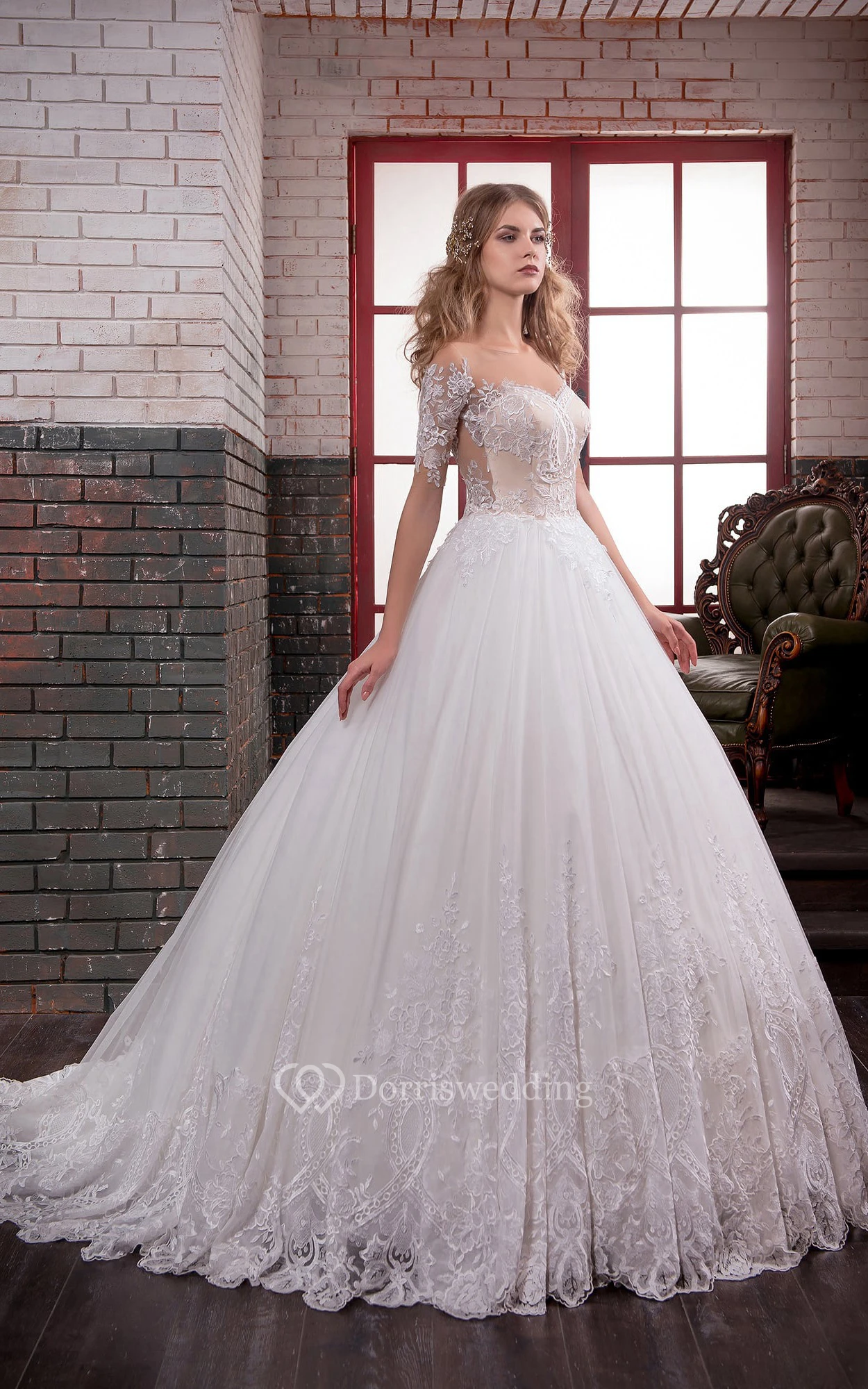 • Hemline/Train: Floor-length