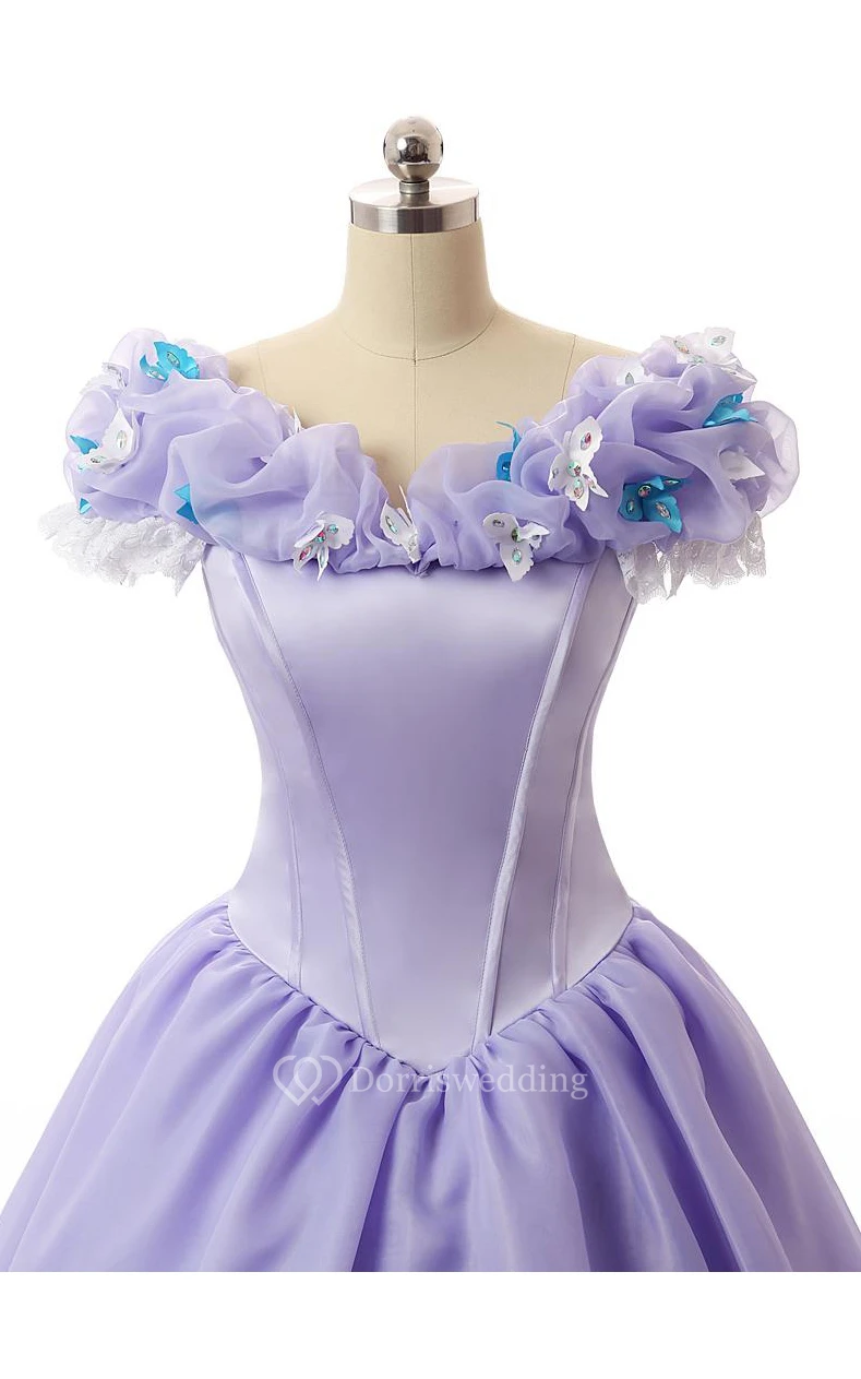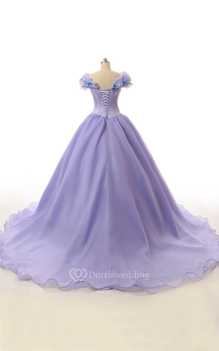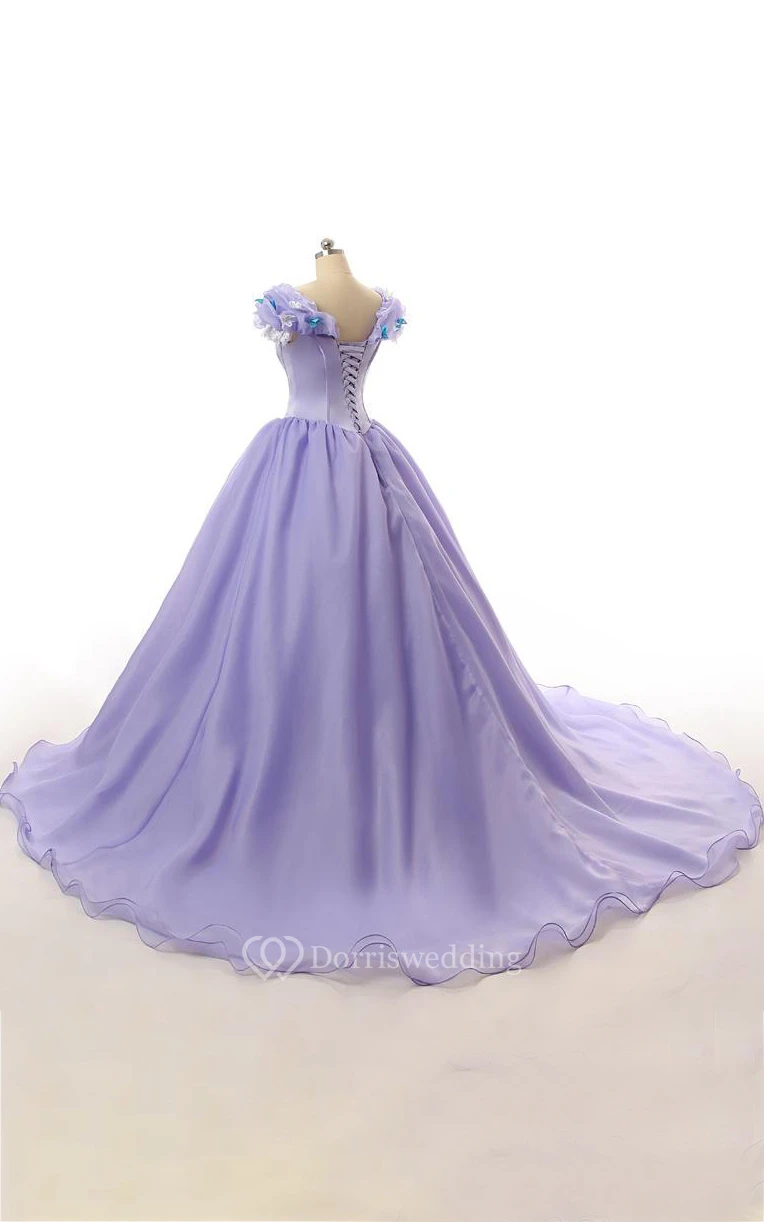 Ball Gown Long Ruffles Lace-Up Back Lace Organza Satin Dress