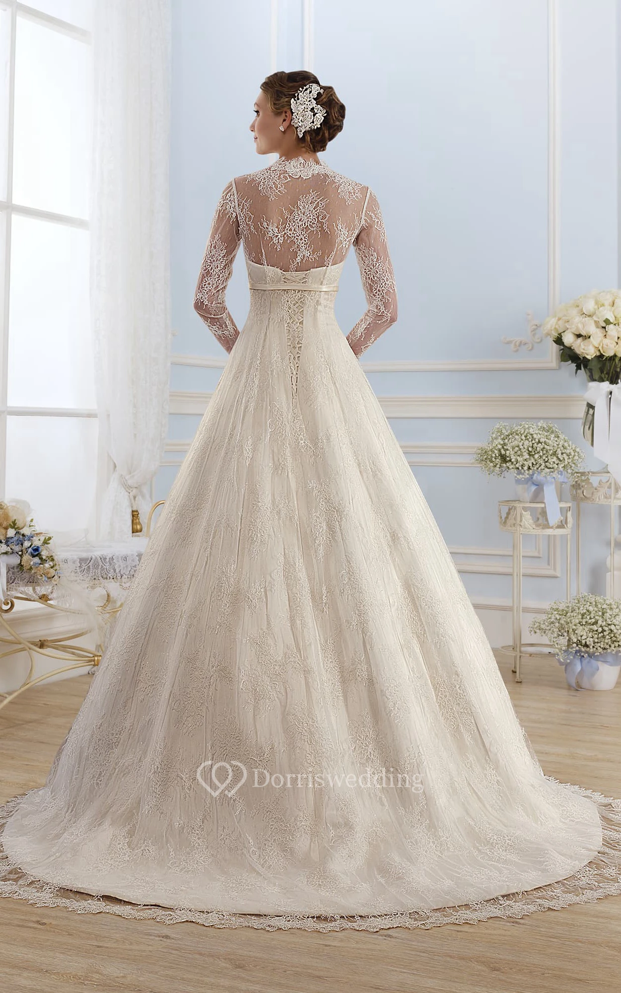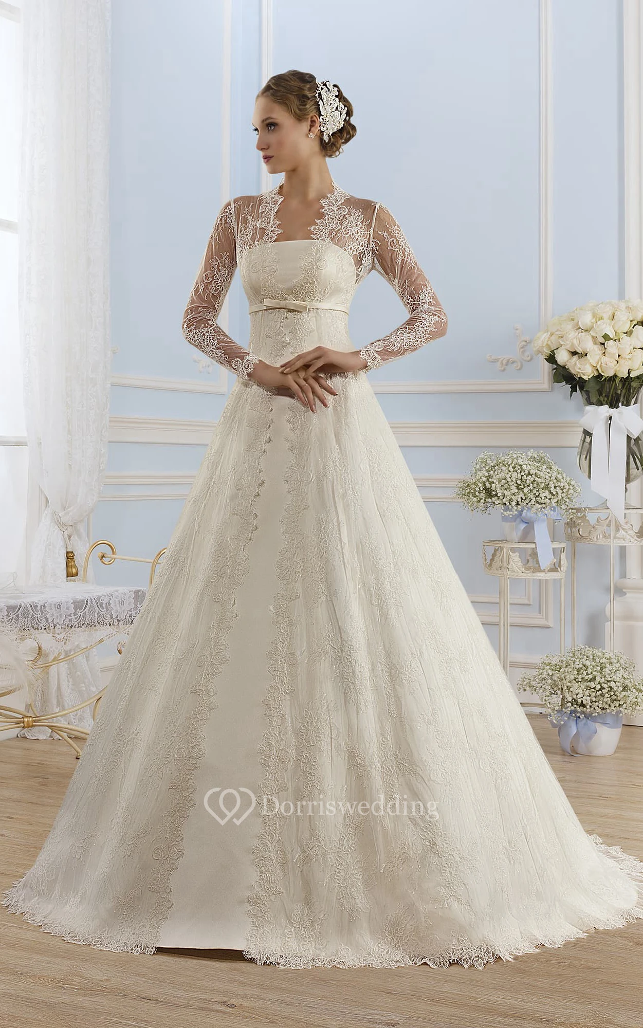 • Hemline/Train: Floor-length, Sweep/Brush Train