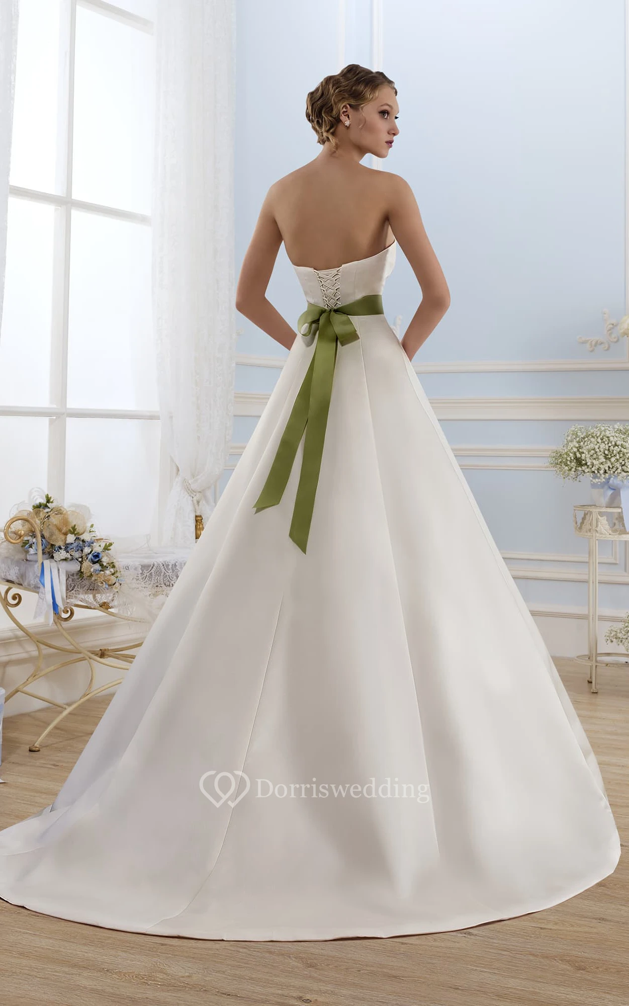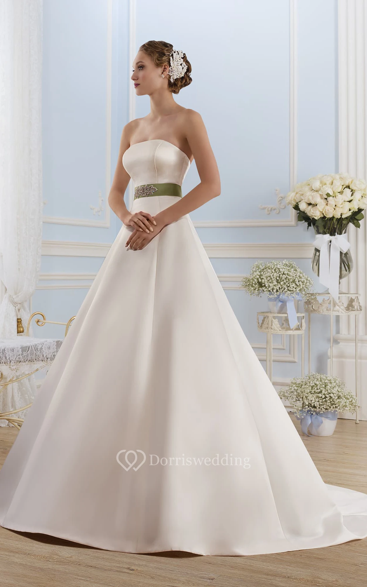 Ball Gown Long Strapless Sleeveless Satin Dress With Waist Jewellery