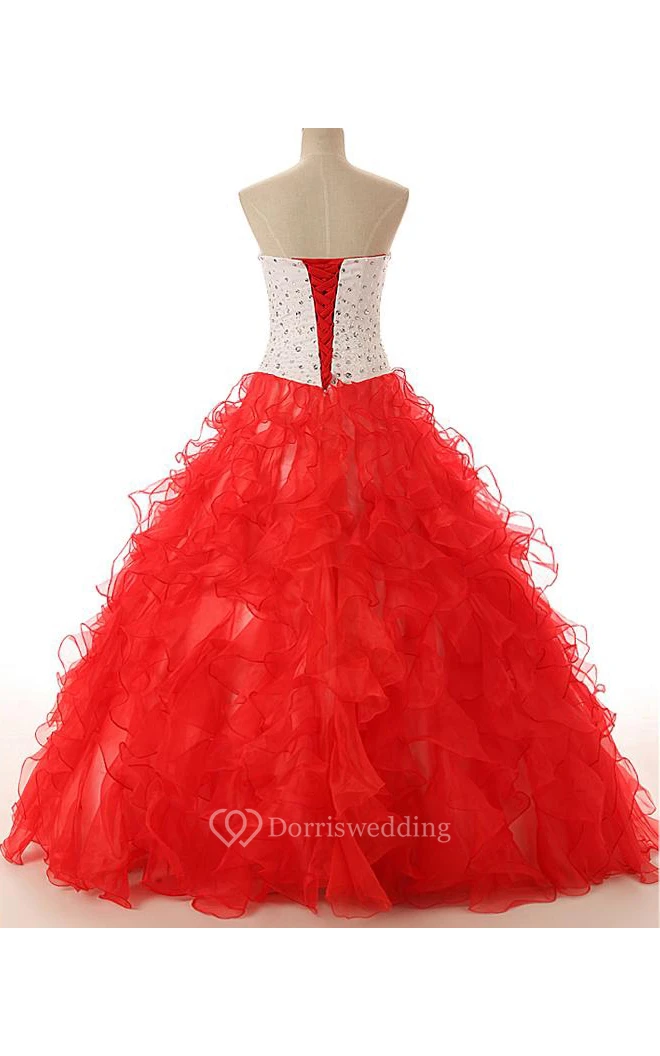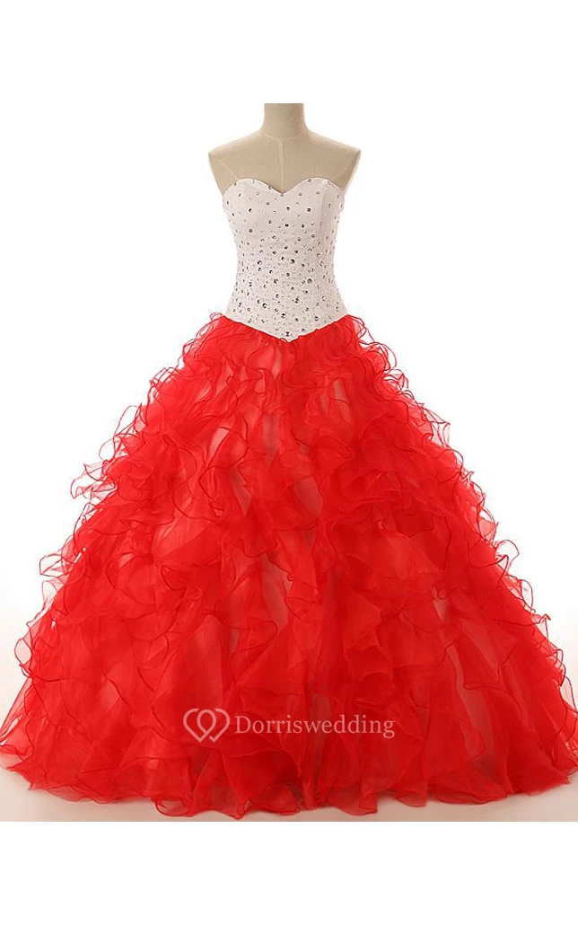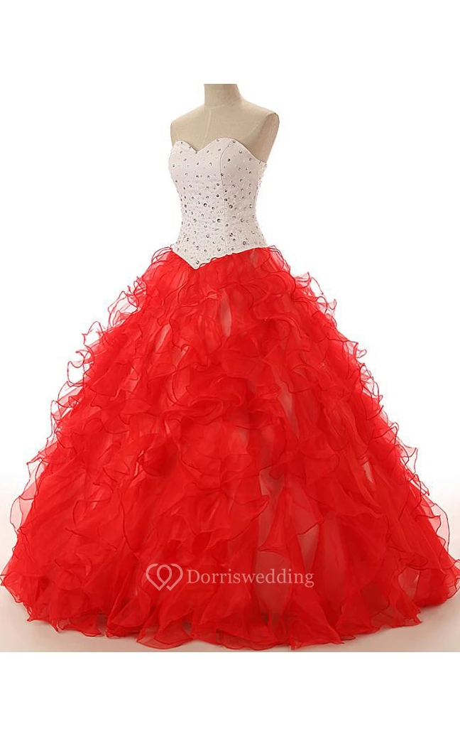 Ball Gown Long Sweetheart Beading Lace-Up Back Lace Sequins Organza Satin Dress