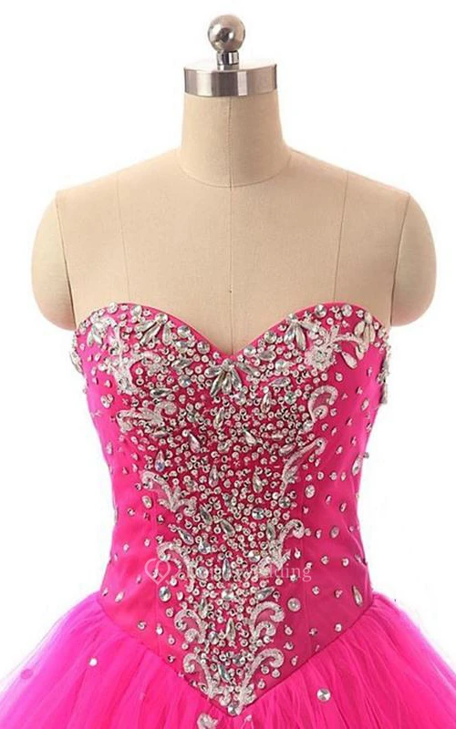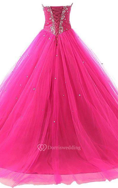 Ball Gown Long Sweetheart Sleeveless Bell Beading Appliques Lace-Up Back Tulle Lace Dress