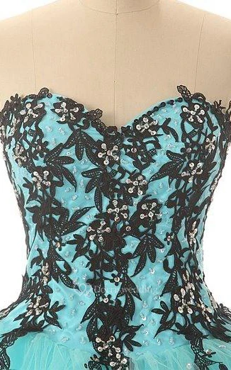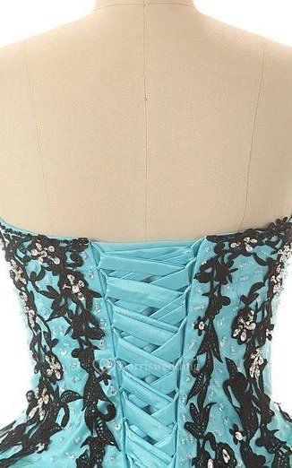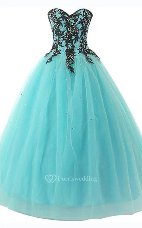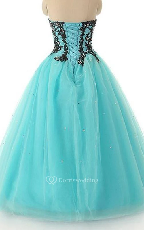 Ball Gown Long Sweetheart Sleeveless Bell Beading Appliques Lace-Up Back Tulle Lace Sequins Dress