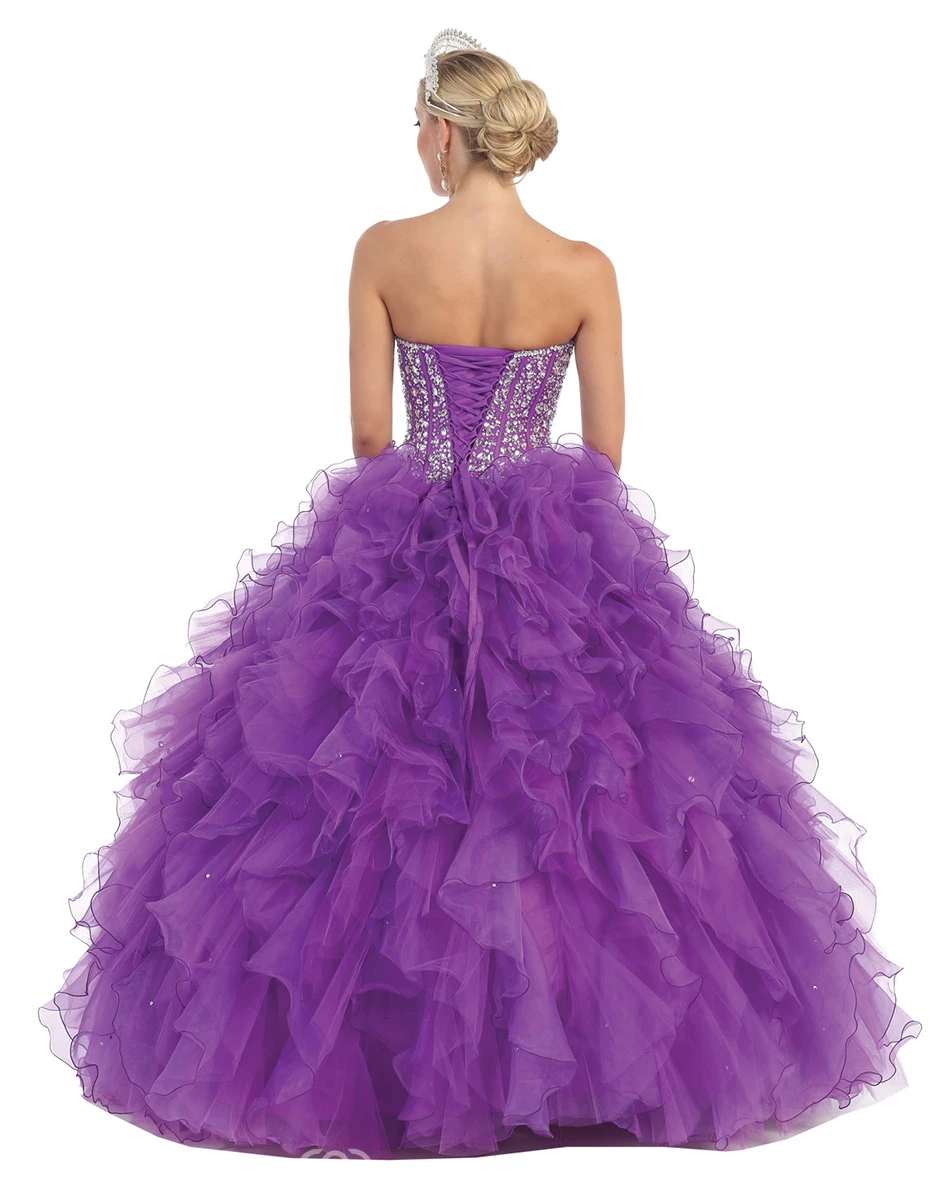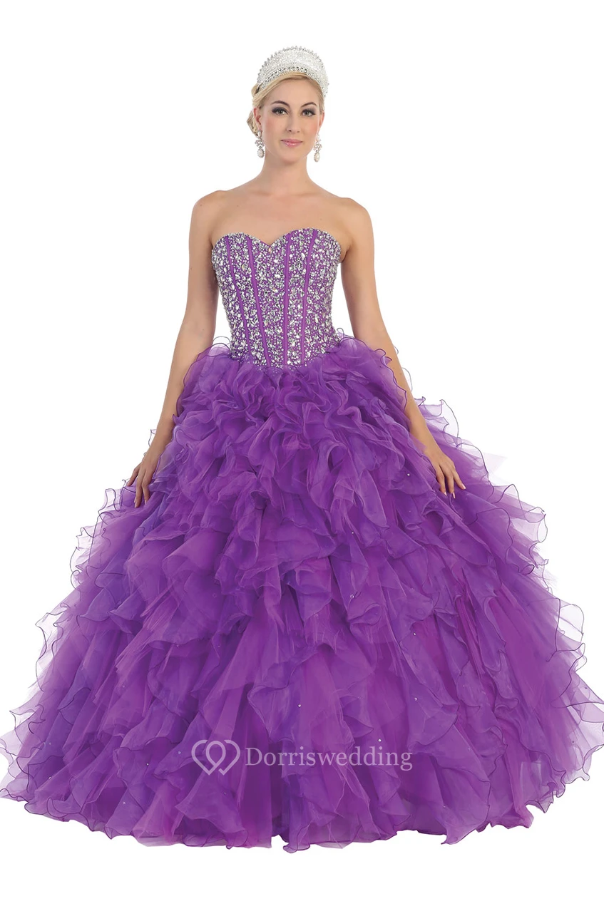 Ball Gown Long Sweetheart Sleeveless Organza Lace-Up Dress With Ruffles And Beading