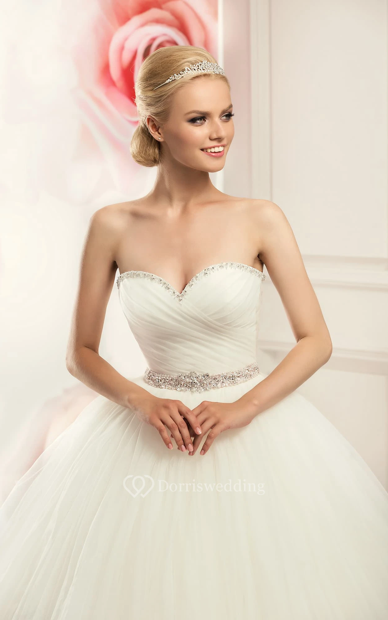 Ball Gown Long Sweetheart Sleeveless Tulle Dress With Beading And Criss Cross
