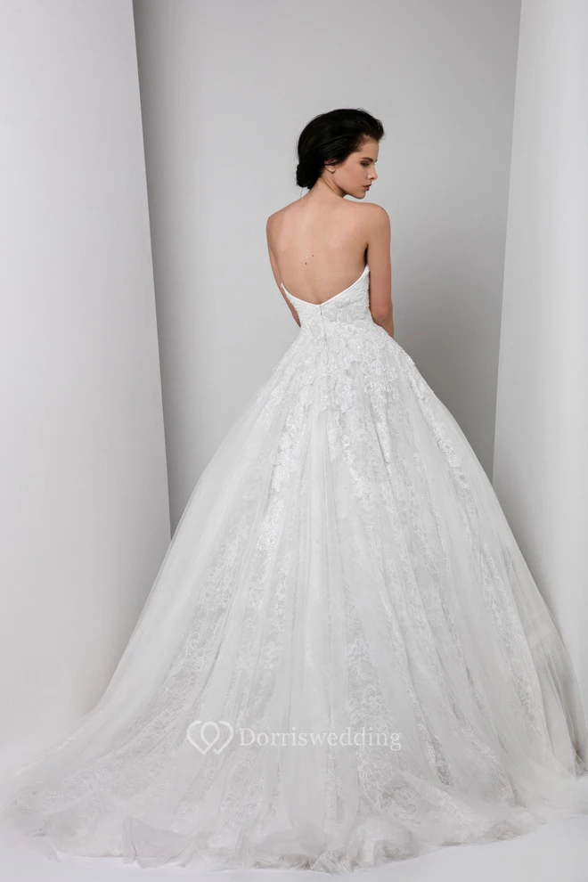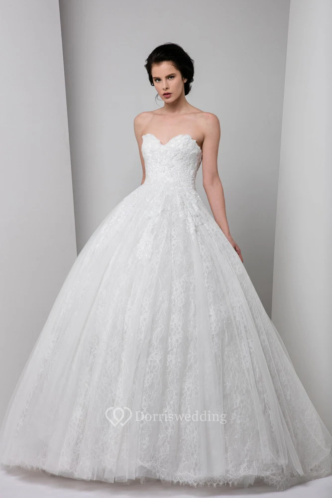 Ball Gown Maxi Appliqued Sweetheart Lace Wedding Dress With Beading And V Back