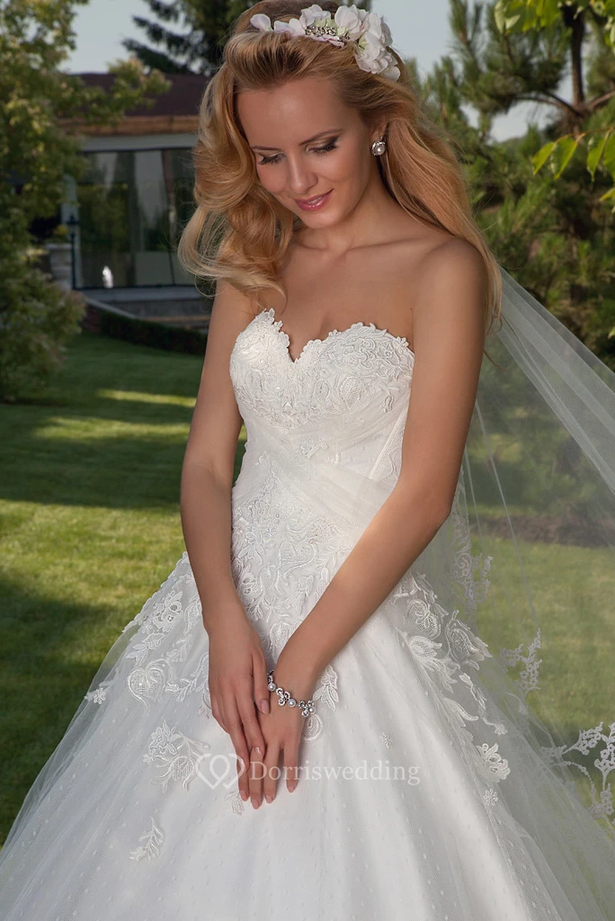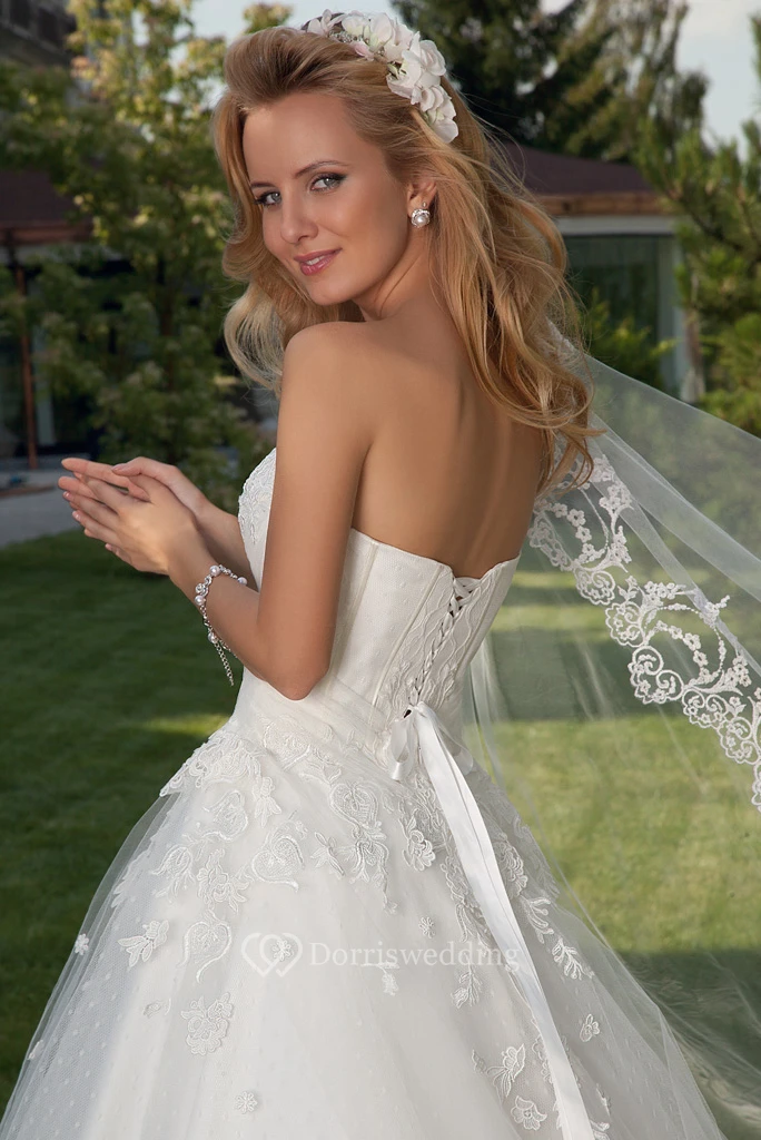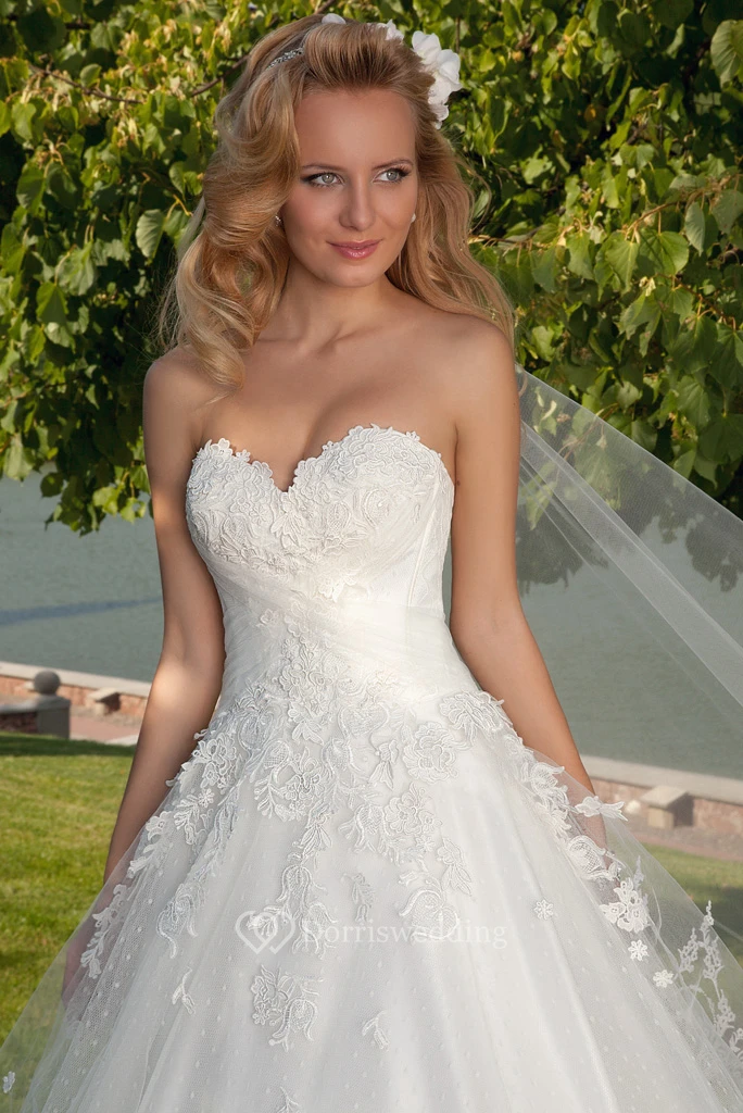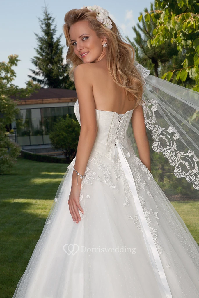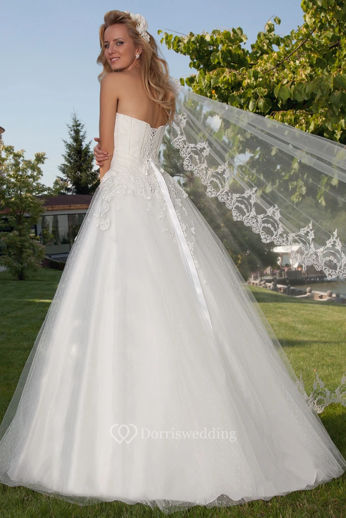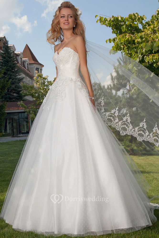 Ball Gown Maxi Appliqued Sweetheart Sleeveless Tulle Wedding Dress