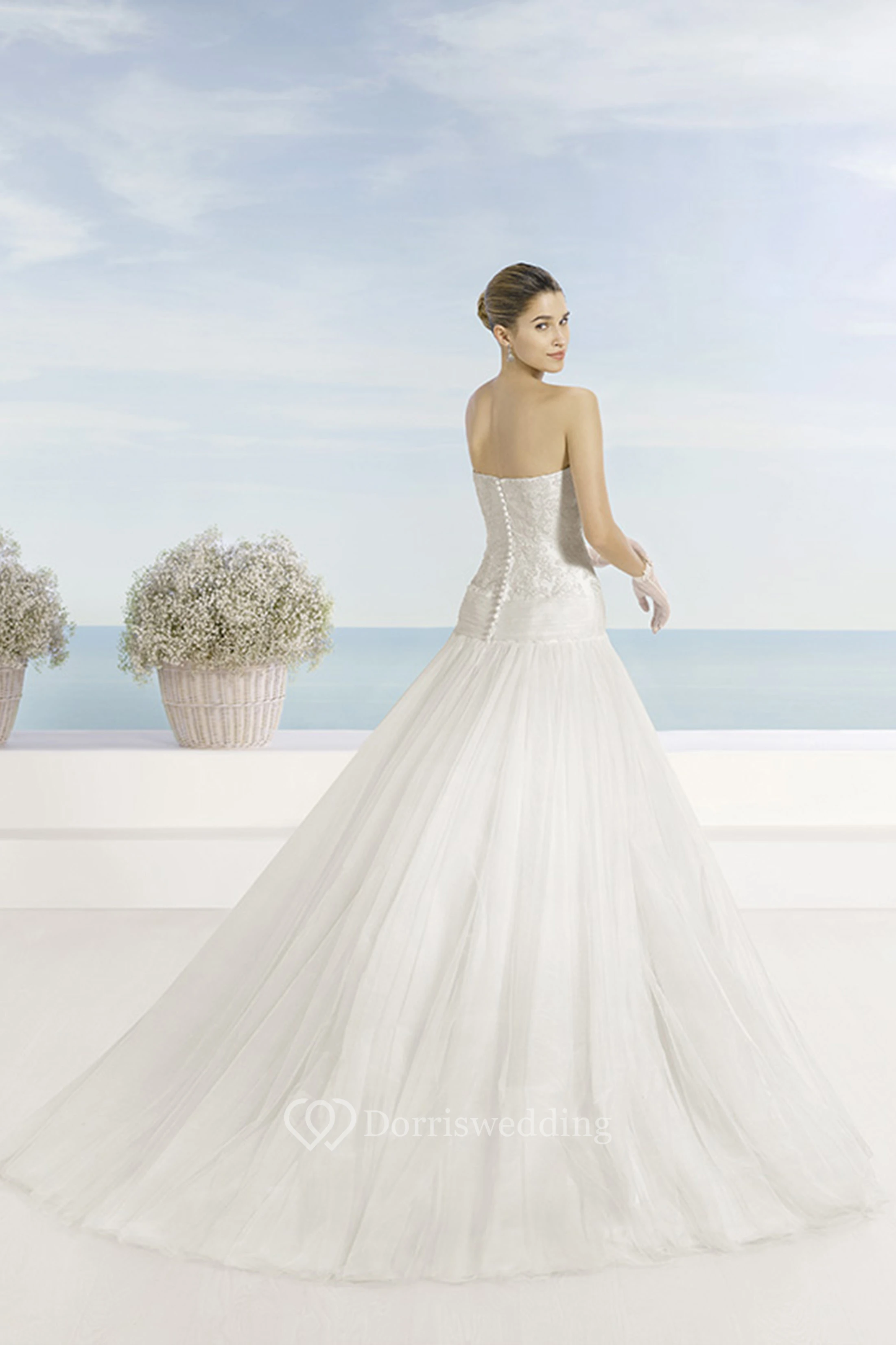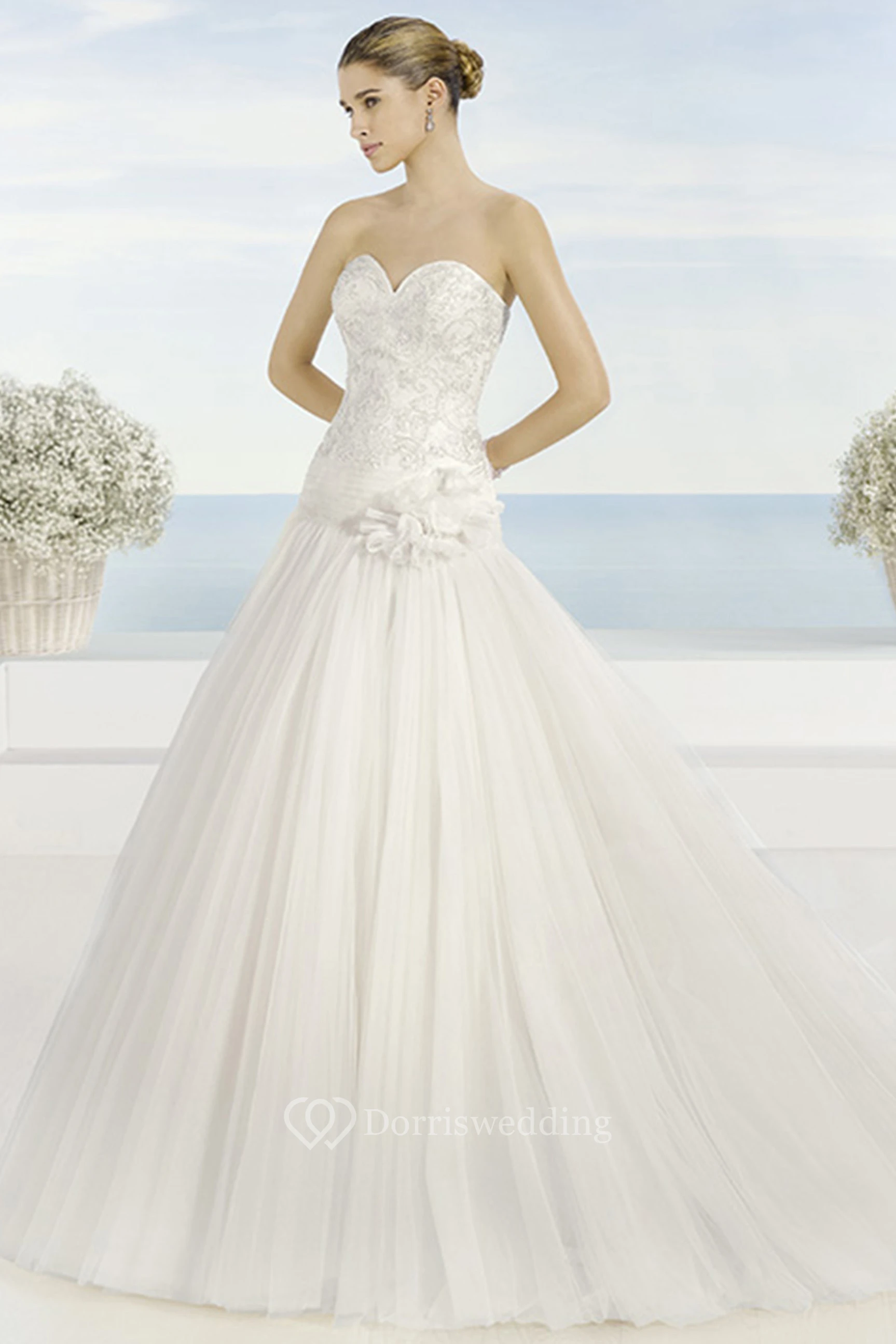 Ball Gown Maxi Embroidered Sweetheart Tulle Wedding Dress With Flower