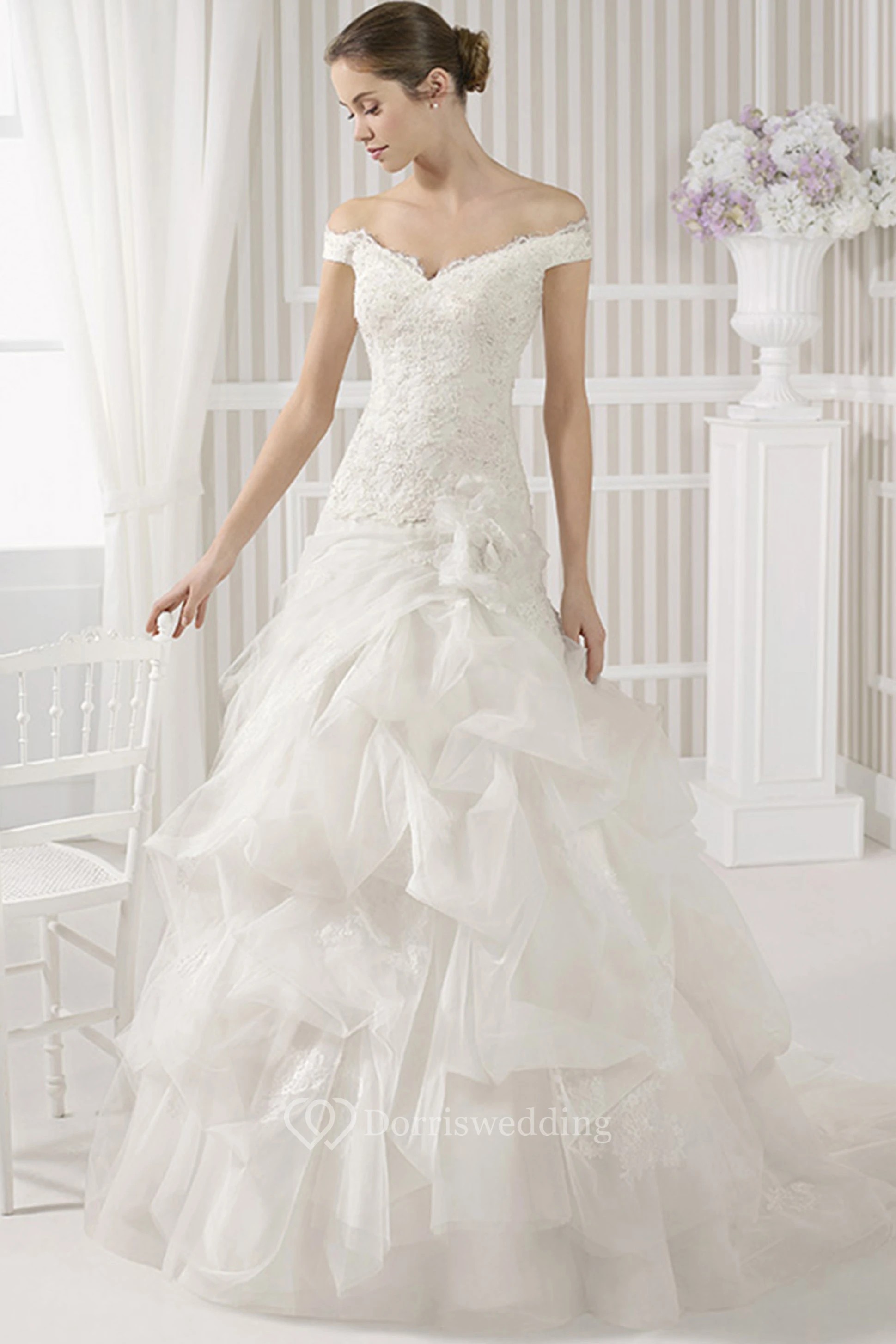 Ball Gown Maxi Off-The-Shoulder Appliqued Tulle Wedding Dress Styles