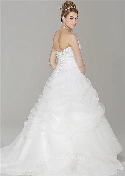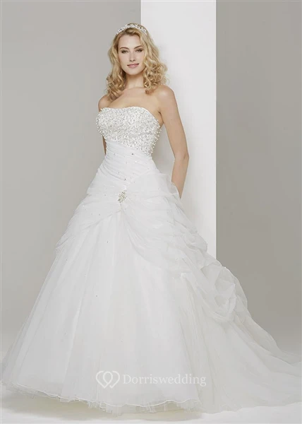Ball Gown Maxi Pick-Up Strapless Sleeveless Tulle Wedding Dress With Beading