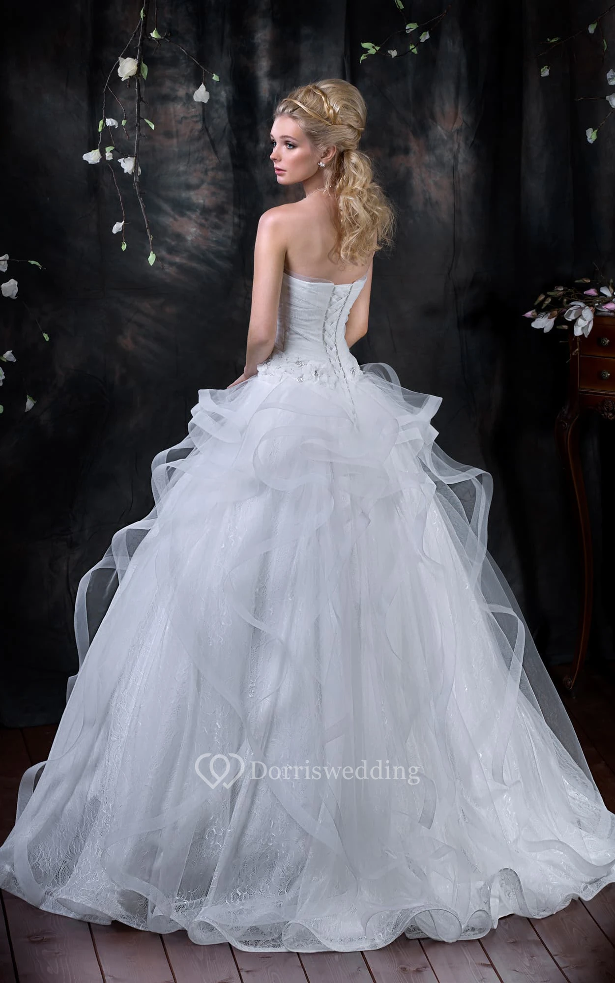 Ball Gown Maxi Strapless Sleeveless Lace-Up Tulle Dress With Ruffles And Flower