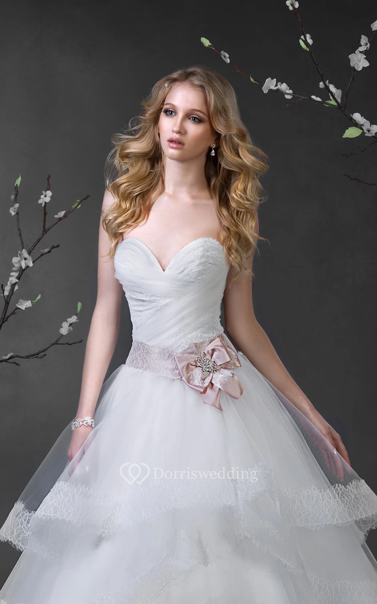 • Hemline/Train: Floor-length, Sweep/Brush Train