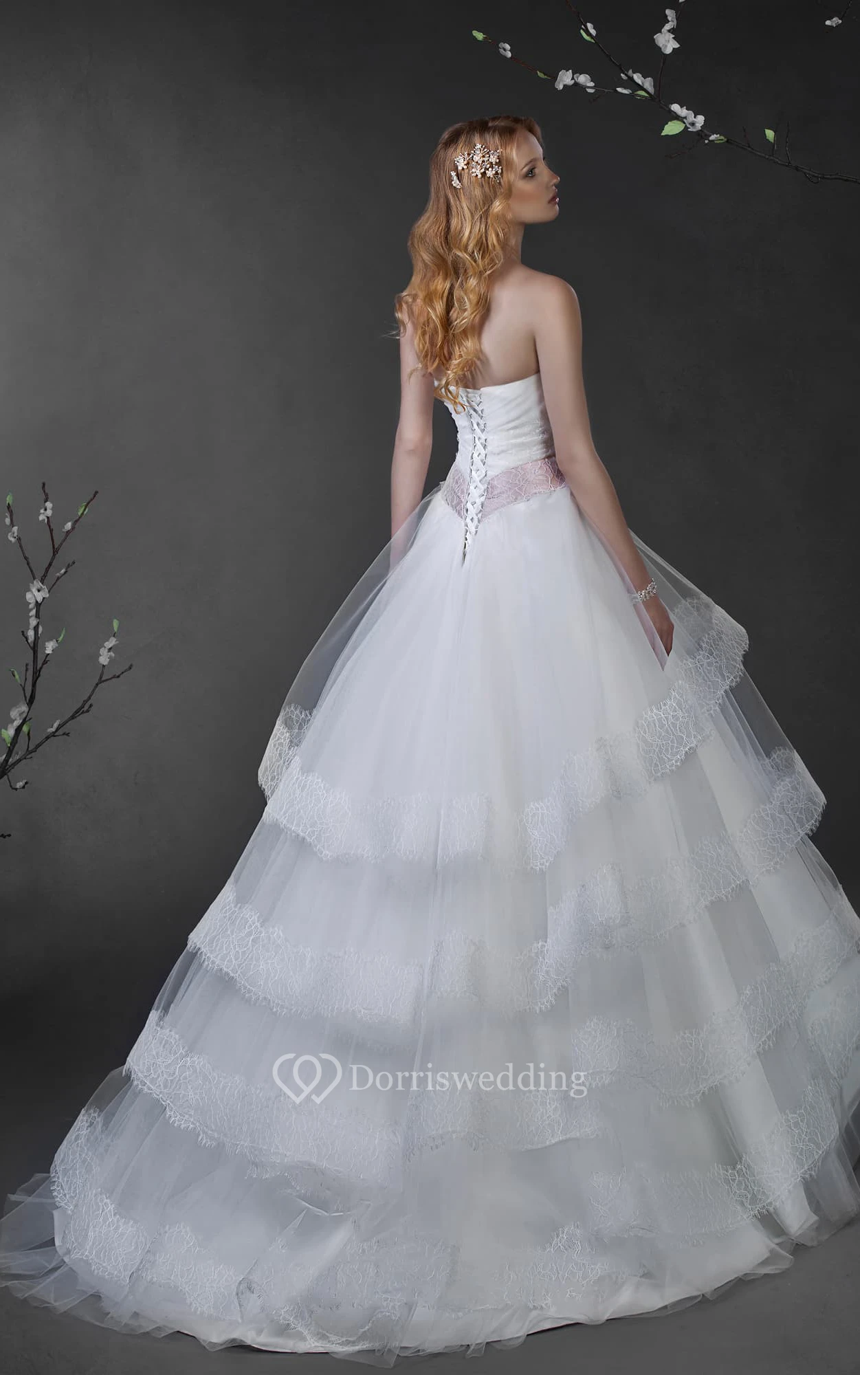 Ball Gown Maxi Sweetheart Sleeveless Lace-Up Tulle Dress With Tiers And Beading