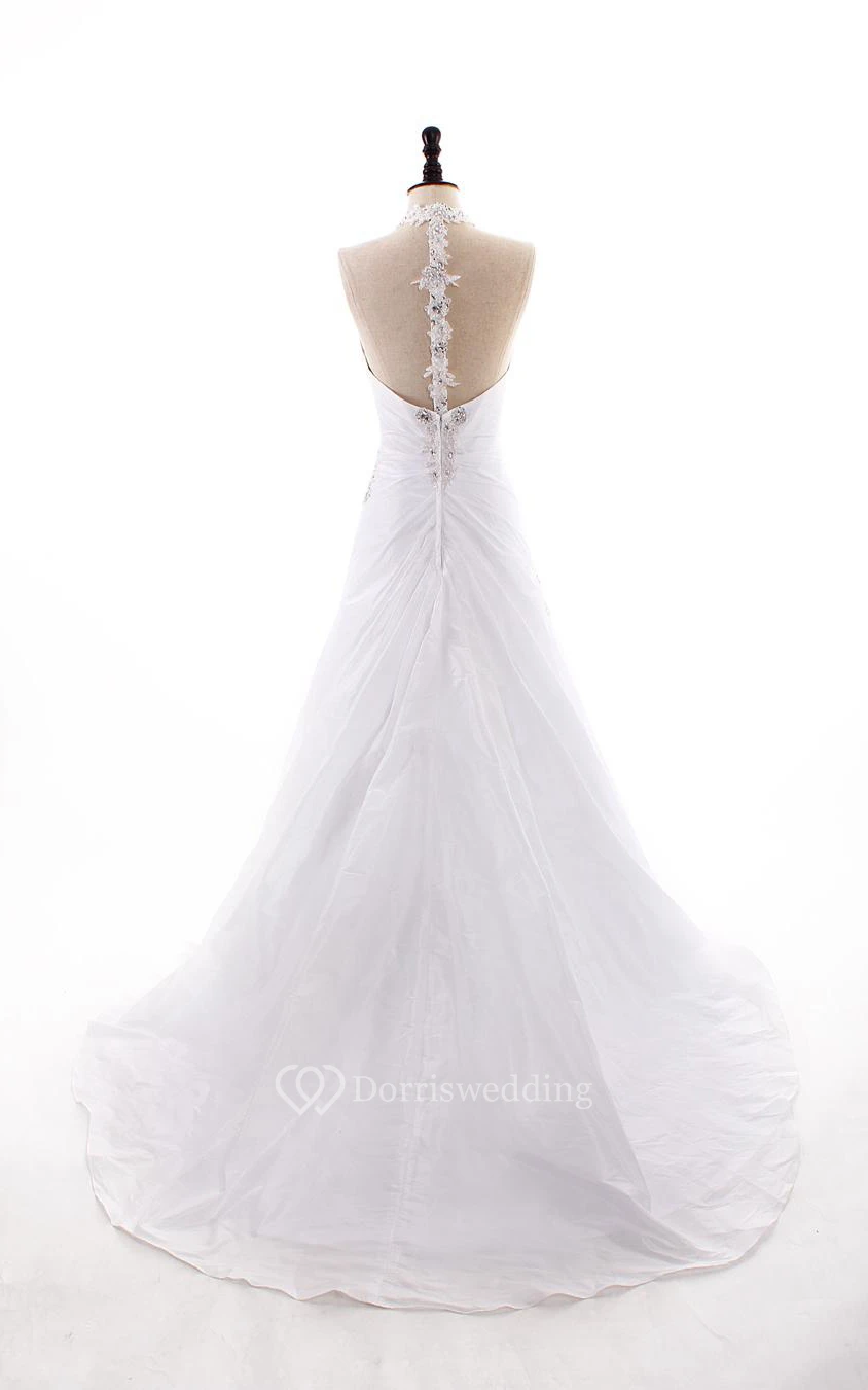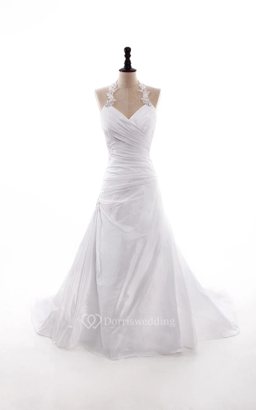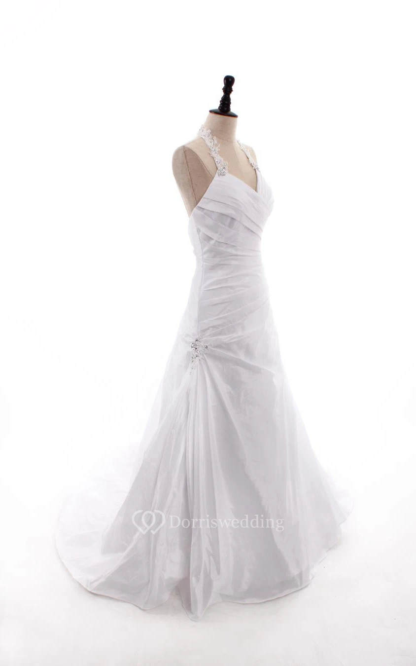 Ball Gown Mermaid Long Halter Off-The-Shoulder One-Shoulder V-Neck Sleeveless Bell Beading Chapel Train Zipper Lace Taffeta Dress