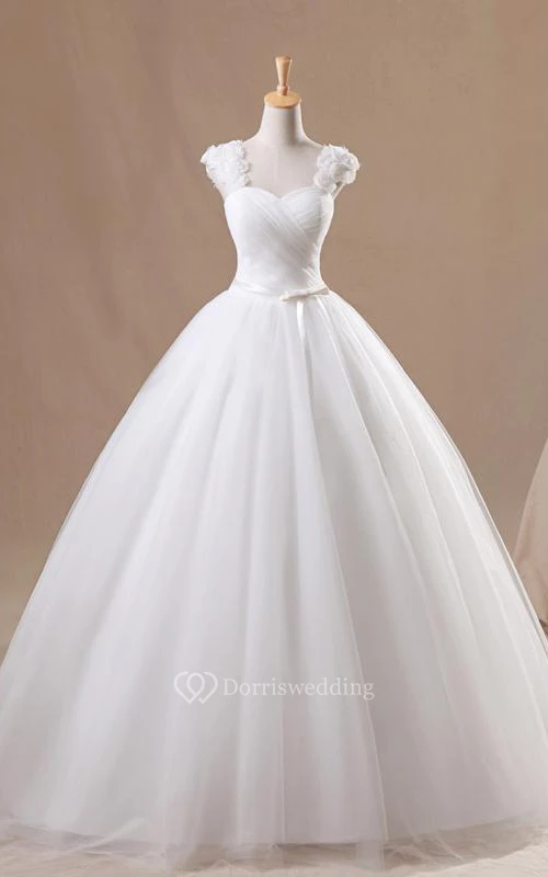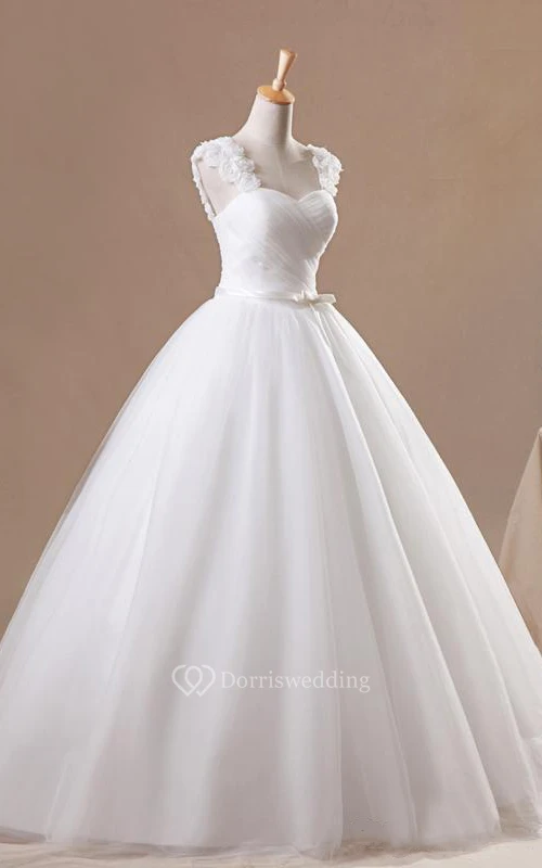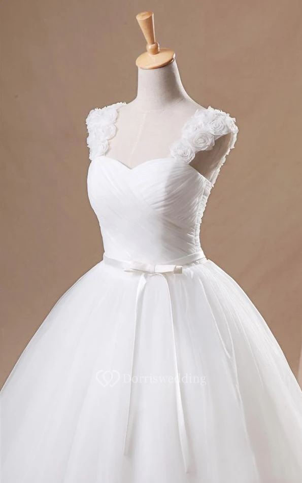 Ball Gown Mini Straps Sweetheart Sleeveless Bell Cap Flower Chapel Train Corset Back Straps Tulle Lace Dress