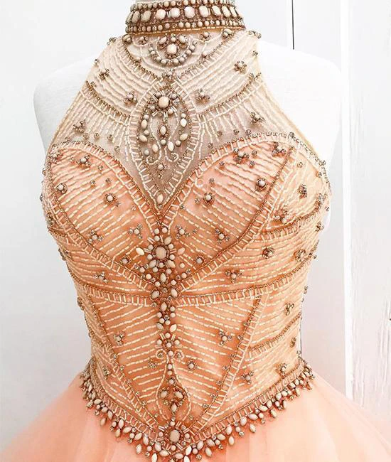 Ball Gown Organza High Neck Sleeveless Keyhole Dress