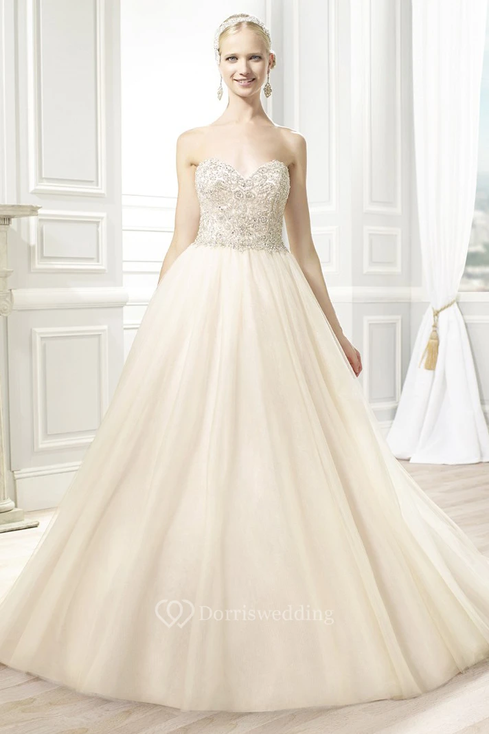 Ball Gown Pleated Sweetheart Maxi Tulle Wedding Dress With Beading And V Back