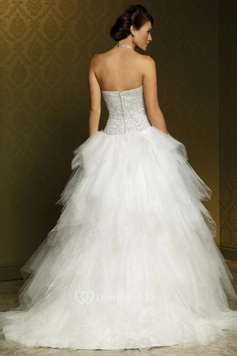 Ball Gown Ruffled Sweetheart Tulle Wedding Dress With Beading And Court Train