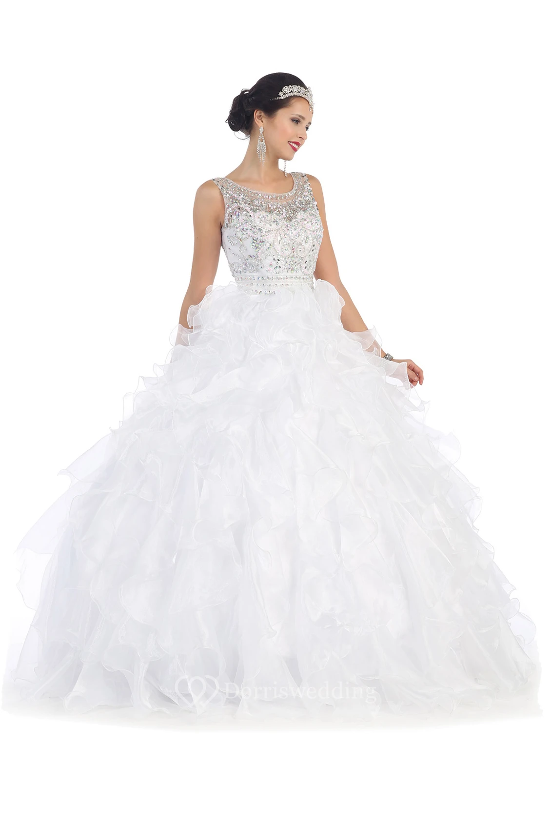 Ball Gown Scoop-Neck Sleeveless Organza Corset Back Dress With Beading And Ruffles