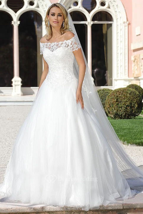 Ball Gown Short-Sleeve Off-The-Shoulder Tulle Wedding Dress