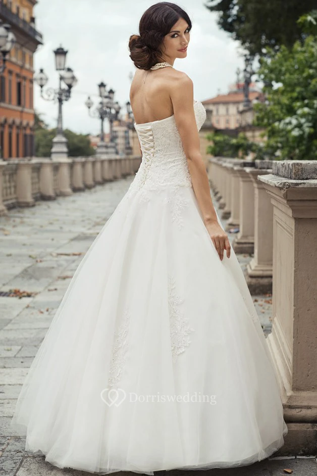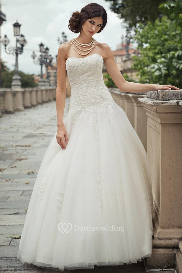 Ball Gown Sleeveless Appliqued Floor-Length Strapless Tulle&Lace Wedding Dress