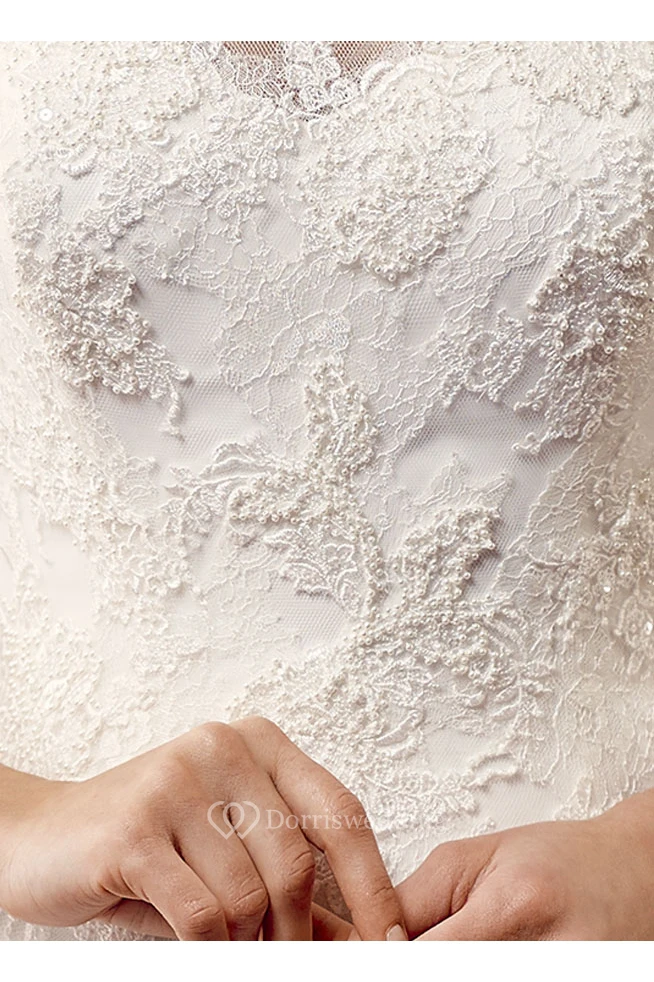 Ball-Gown Sleeveless Appliqued Maxi Jewel Lace&Tulle Wedding Dress With Illusion Back And Court Train