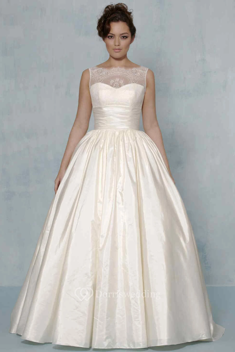 Ball Gown Sleeveless Bateau-Neck Long Satin&Lace Wedding Dress