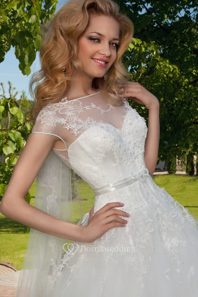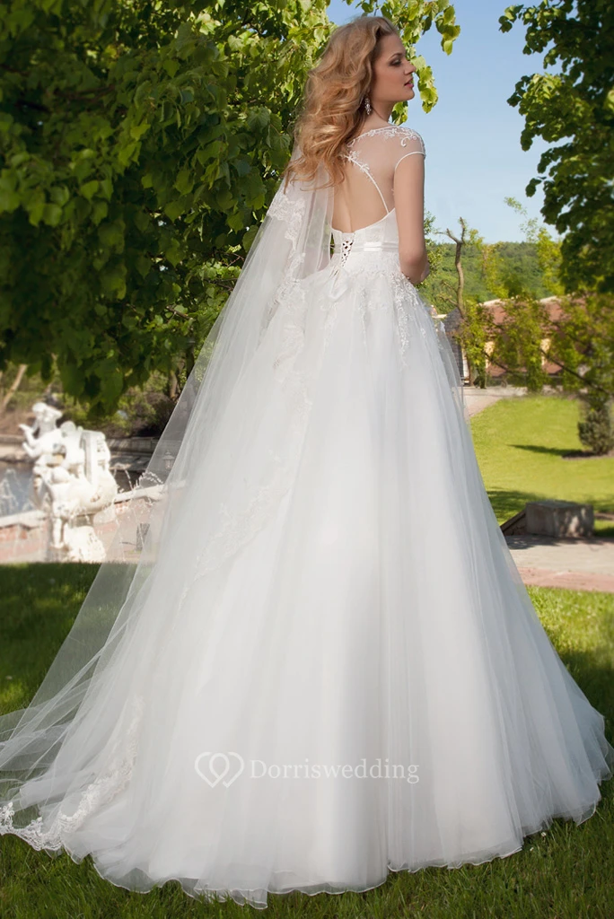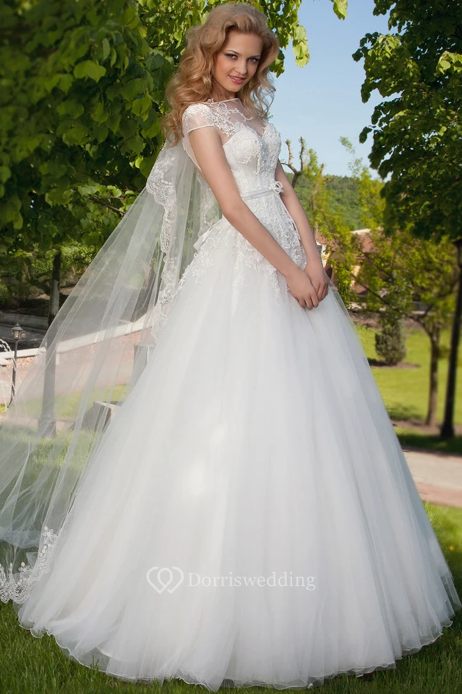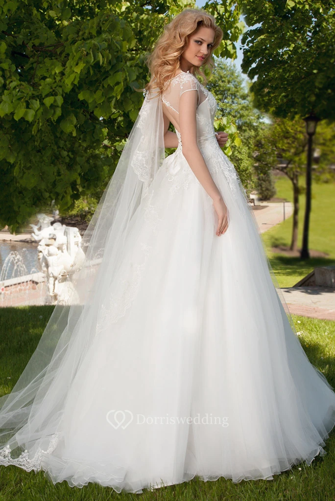 Ball Gown Sleeveless High Neck Tulle Wedding Dress With Keyhole