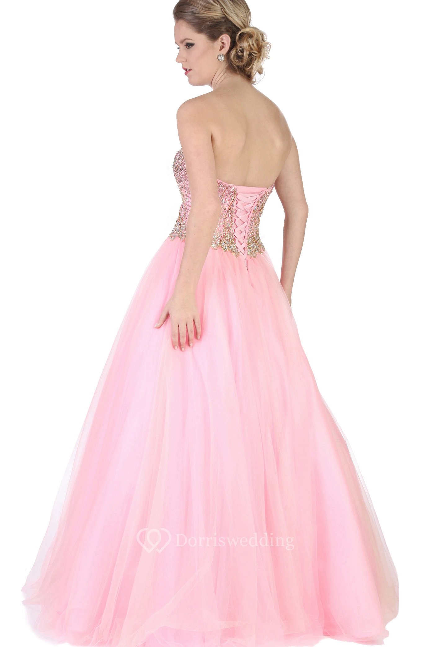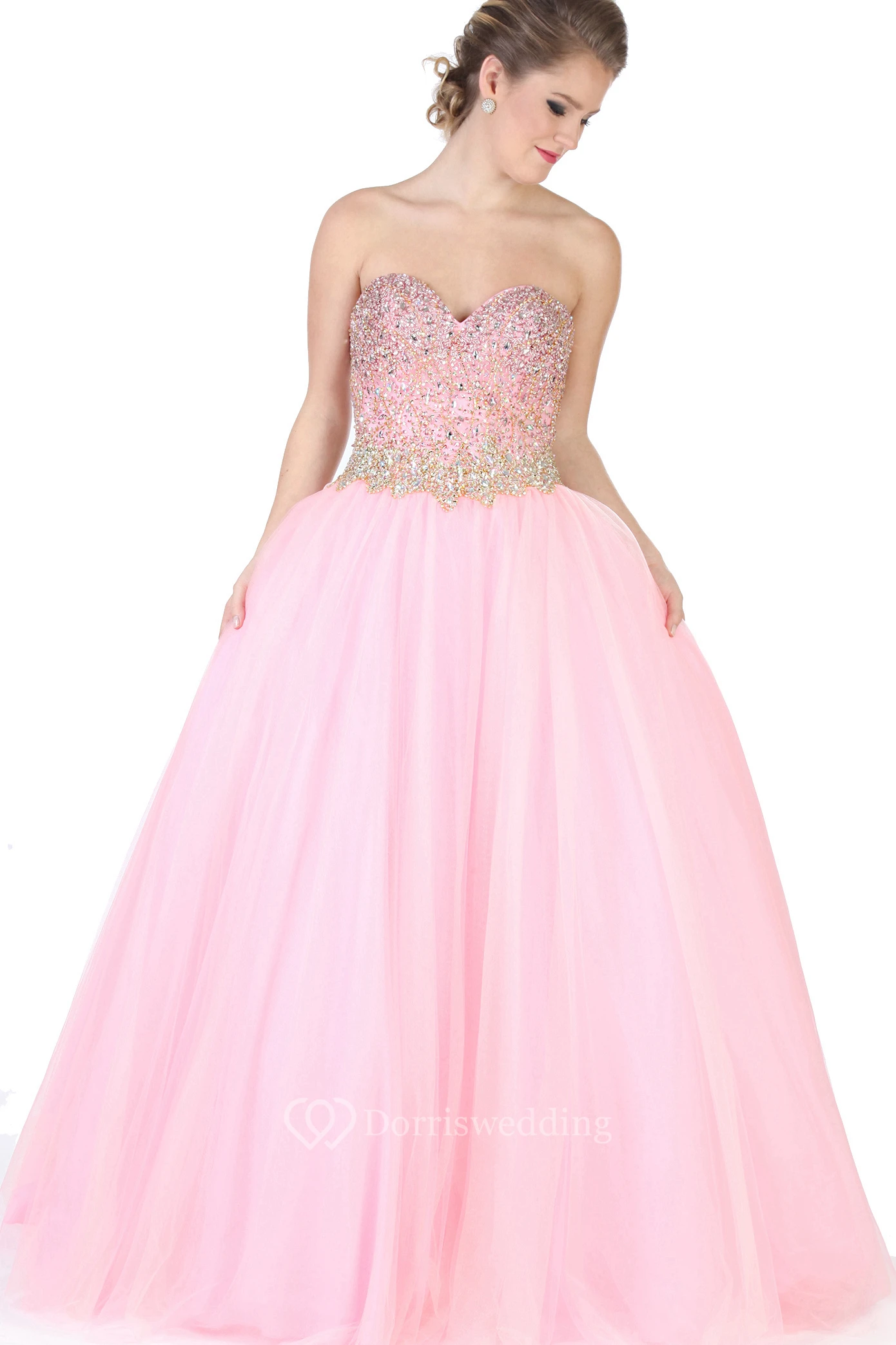 Ball Gown Sleeveless Long Sweetheart Beaded Tulle Prom Dress