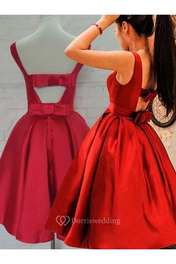 Ball Gown Sleeveless Satin Open Back Tea-length Homecoming Dress