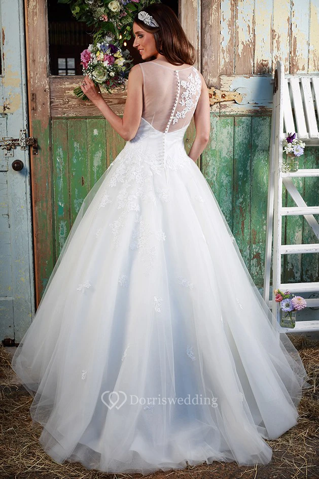 Ball Gown Sleeveless Scoop-Neck Appliqued Floor-Length Tulle Wedding Dress