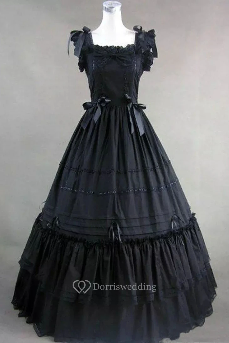 Ball Gown Square Sleeveless Floor-length Princess Wedding Dress with Bow Ruffles and Tiers